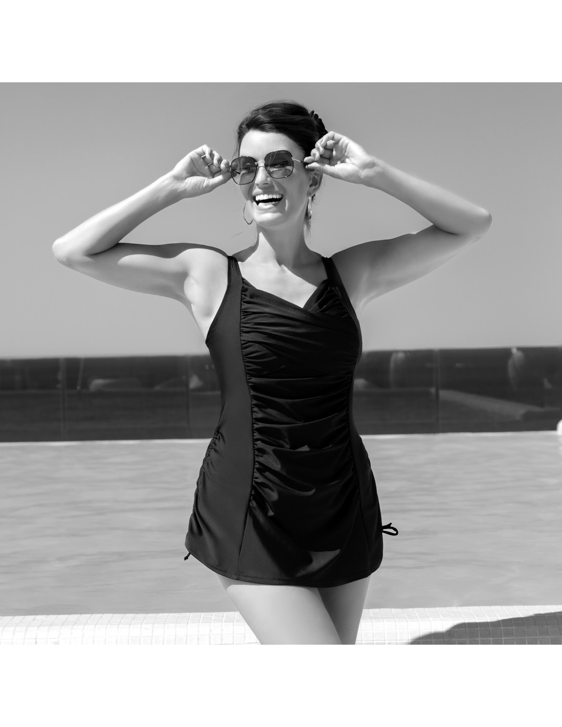 Badedrakt med skjørt som også går litt opp i størrelsen.. Justerbare stropper. Figur kontroll. 360 graders bryststøtte. myke kopper. Stretch stoff. Høy klorbestandighet og forbedret fargeekthet