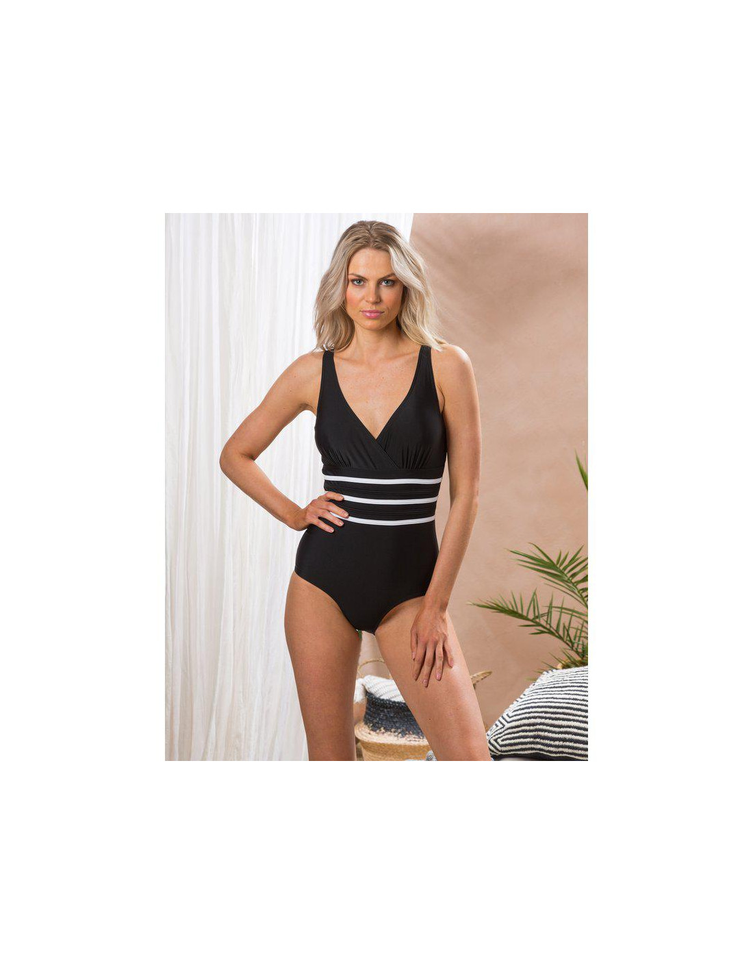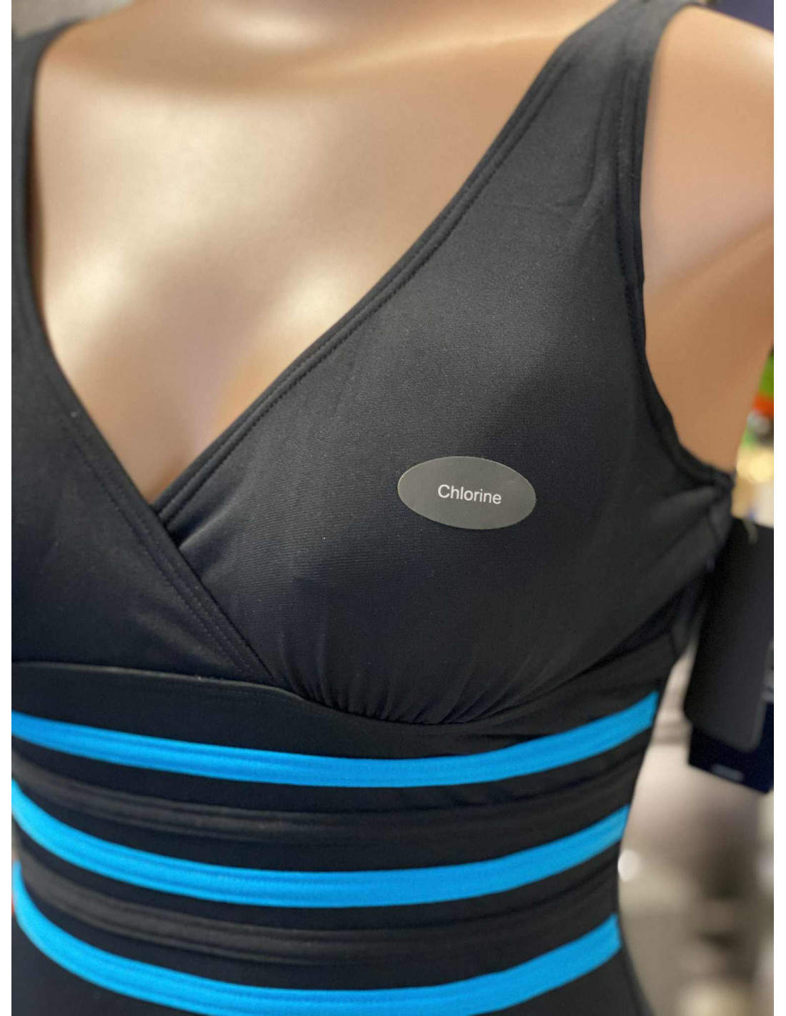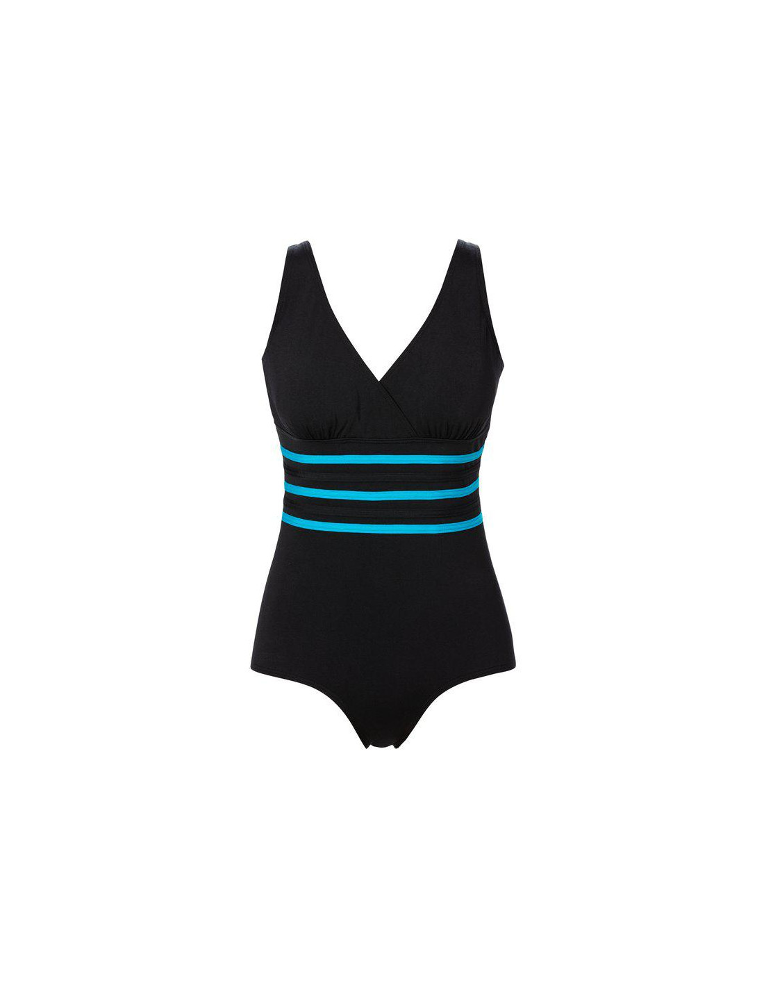 Klorbestandig badedrakt i miljøvennlig stoff. Feminin passform med overlapping ved bysten. Avtakbar polstring. Dekorative bånd under bysten som også gir ekstra støtte og fin form. Fôr foran. Justerbare skulderstropper. Rett bak. Lav benskjæring. Høy UV-beskyttelse, UPF 50+. Hurtigtørkende stoff med pusteevne og formstabilisering.
