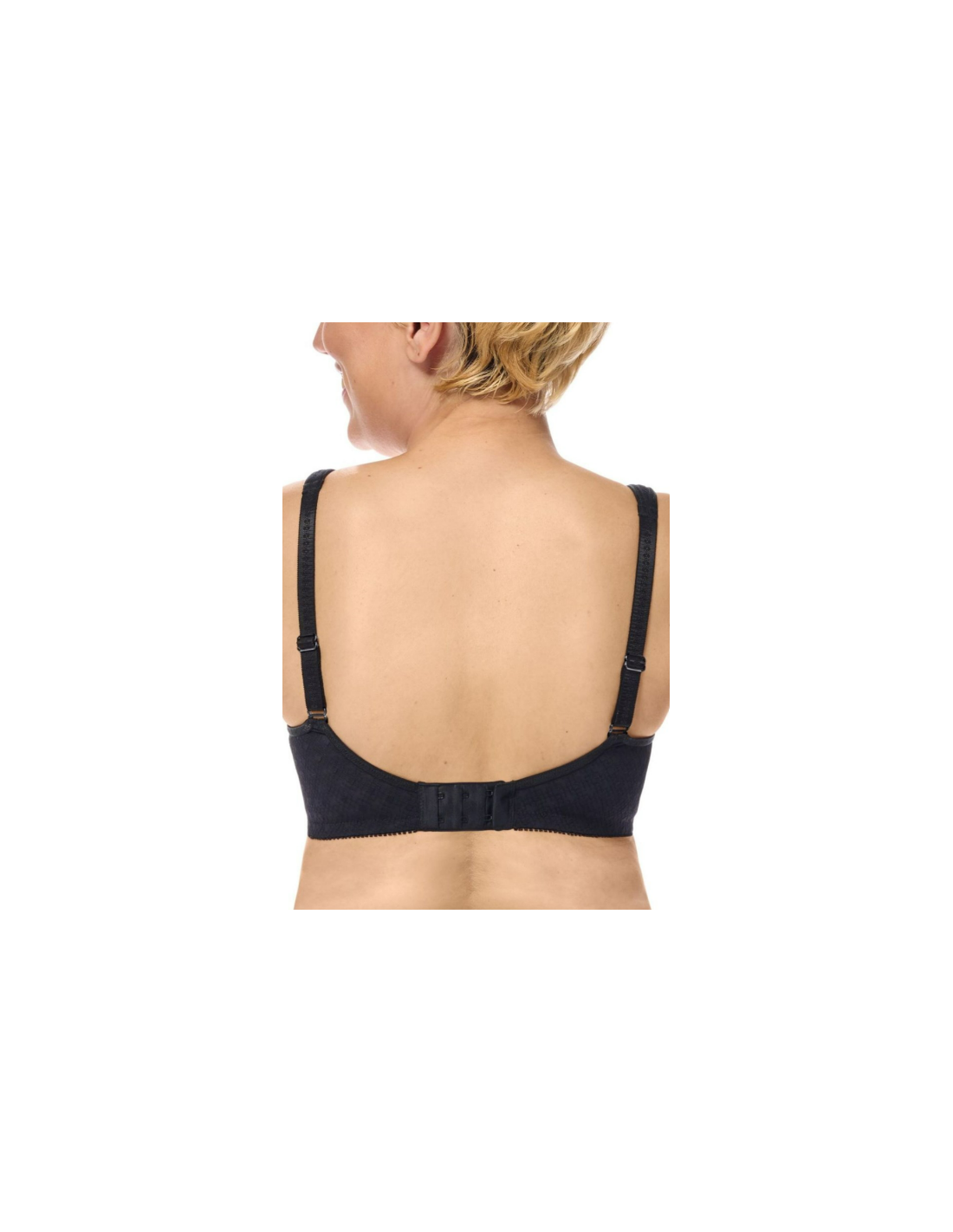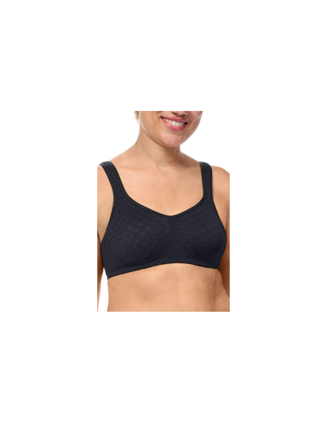 Denne populære Tiana non-wire BH har virkelig full dekning, god støtte og gir en adskilt passform - nå tilgjengelig i en svart farge. Inspirert av vår Dianna BH. Bilaterale lommer usynlig integrert for å skape en jevn silhuett Formstøpte sømløse kopper med teksturert jacquardstoff i moderne geometrisk design Laget av et pustende, temperaturbalanserende mikrofiber for å sikre at hudklimaet alltid er balansert Støttende underbystebånd uten ledninger Bredere polstrede stropper foran tar vekten av skuldrene dine, og gir ekstra komfort Fullt justerbare, elastiske ryggstropper holder deg komfortabel hele dagen
