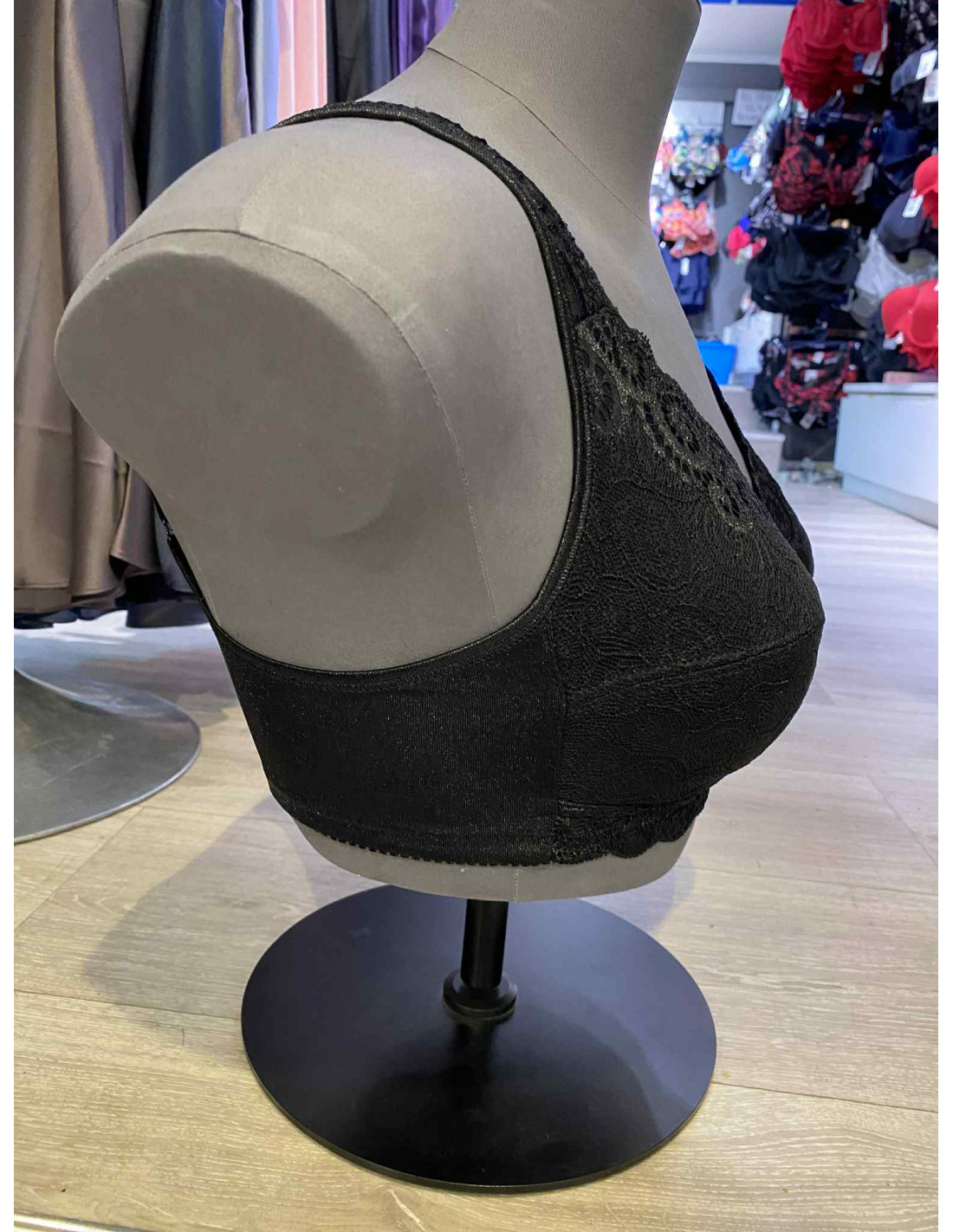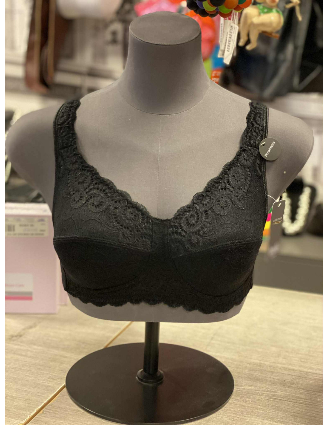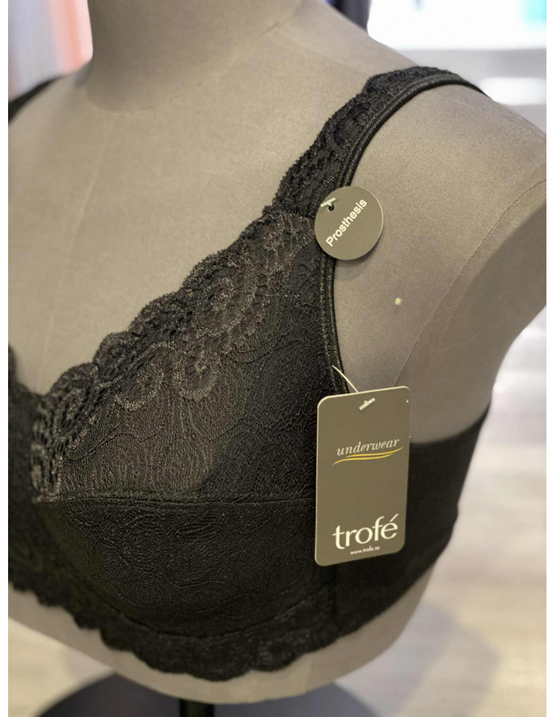 Livia uten bøyle mastektomi, god, nydelig uten innlegg. Hele fronten er laget av myk og behagelig, vevd blonde, synlig gjennomsiktig mellom cupene. Blonden fortsetter opp på skulderstroppene. Ryggbånd i halvblankt stoff og justerbare skulderstropper. Lukkes bak. Cup Full dekning. Plass til proteser. Uten bøyle. Materiale 85 % polyamid, 15 % elastan
