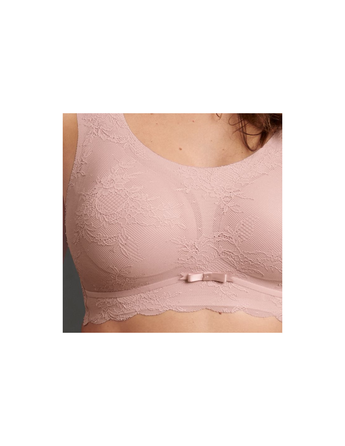 Uformelt, naturlig, feminint: Den ultrakomfortable braletten kombinerer hygge med overlegen stil. Enten som loungewear under en kimono eller stilig undertøy under en festkjole - den diskrete braletten med sitt blomstrete blondeutseende, subtilt utsmykket med et delikat silkebånd, vil garantert lyse opp enhver dag og forme en vakker figur. De støpte koppene med avtagbar skumpolstring utstråler ganske enkelt komfort: den slanke polstringen laget av et fint perforert skum lar huden puste.