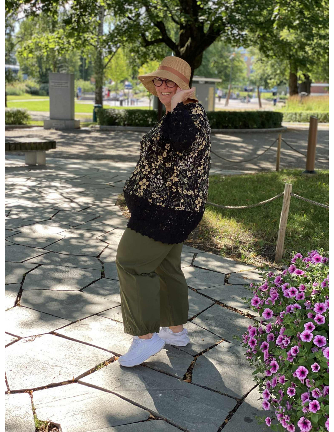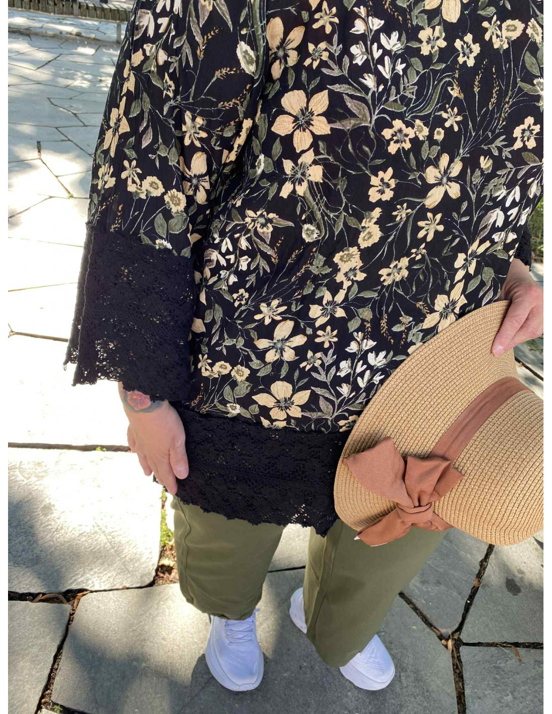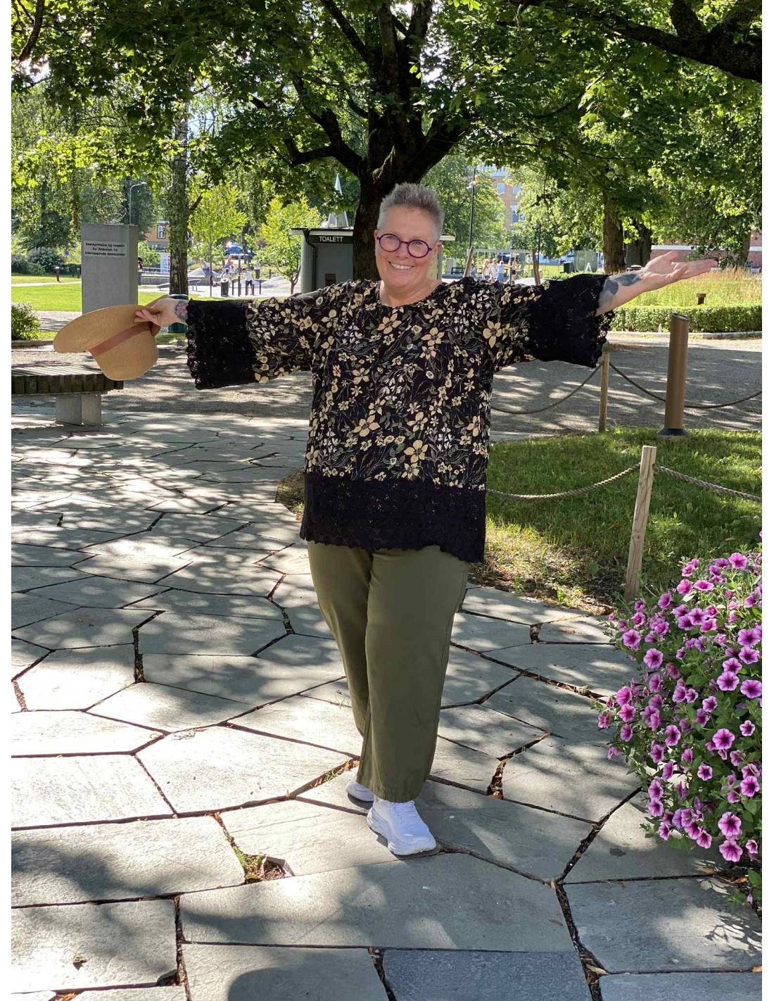 Nydelig overdel med blonde-detaljer og en liten trompet-arm.
