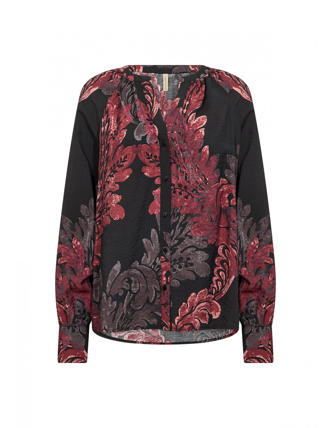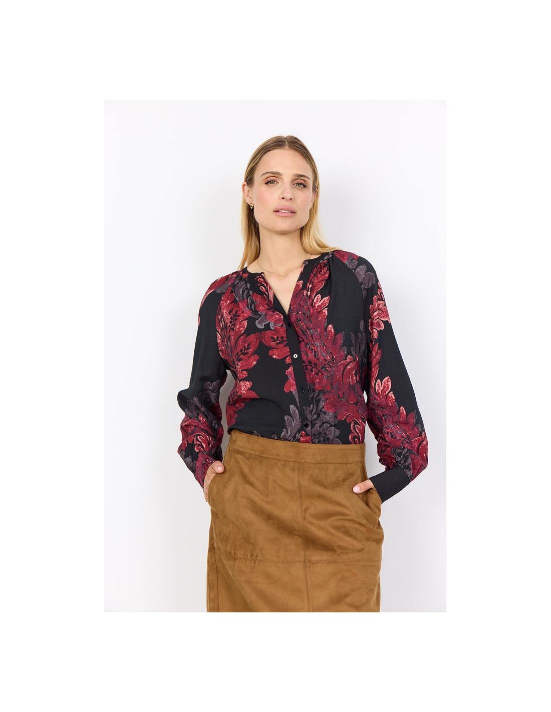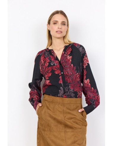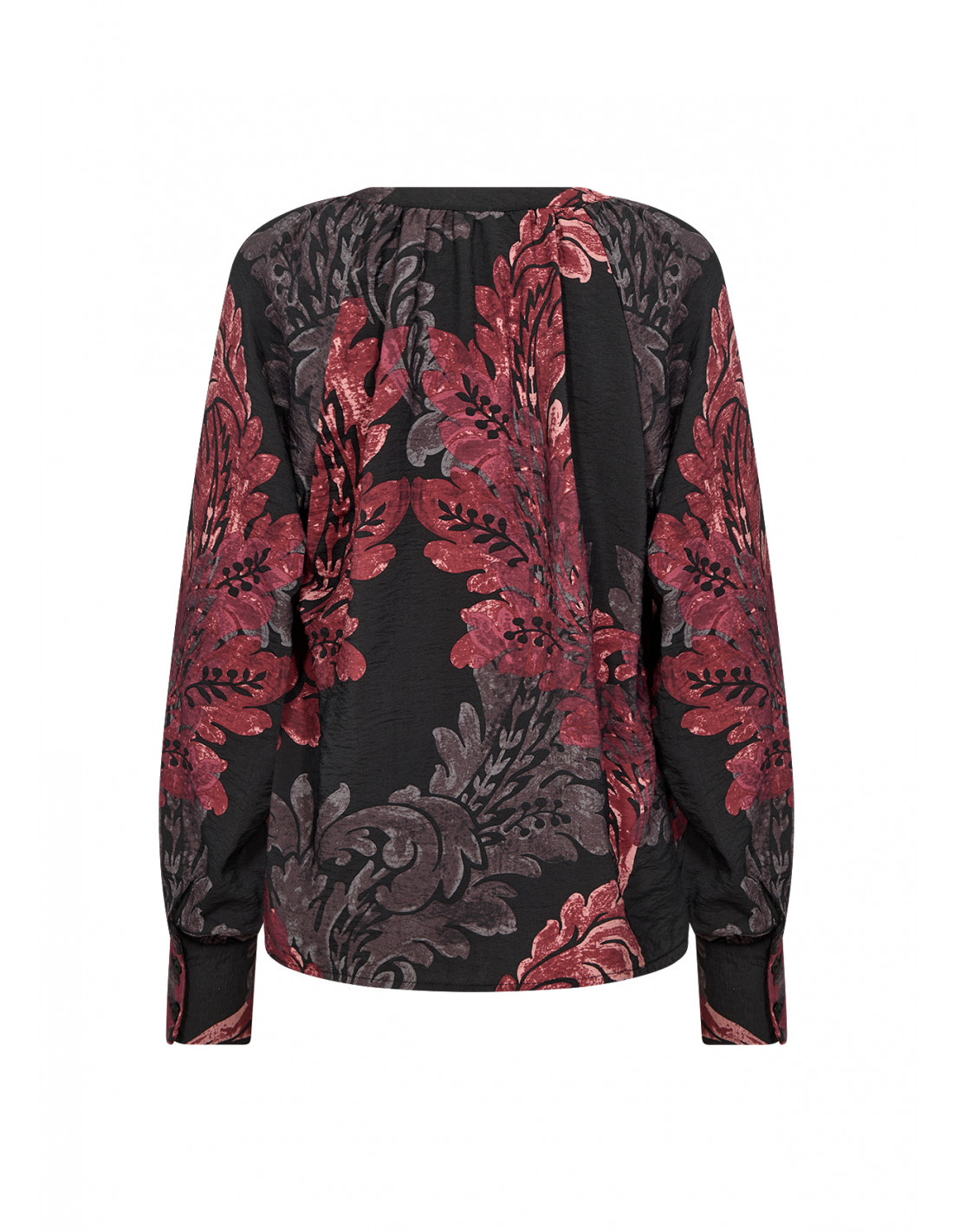 Dette plagget har en myk, rynket rund krage, knappedetaljer foran, lange ermer og et dristig blomstertrykk. Kombiner den med klassiske jeans for et avslappet utseende eller skreddersydde bukser for en mer formell anledning.