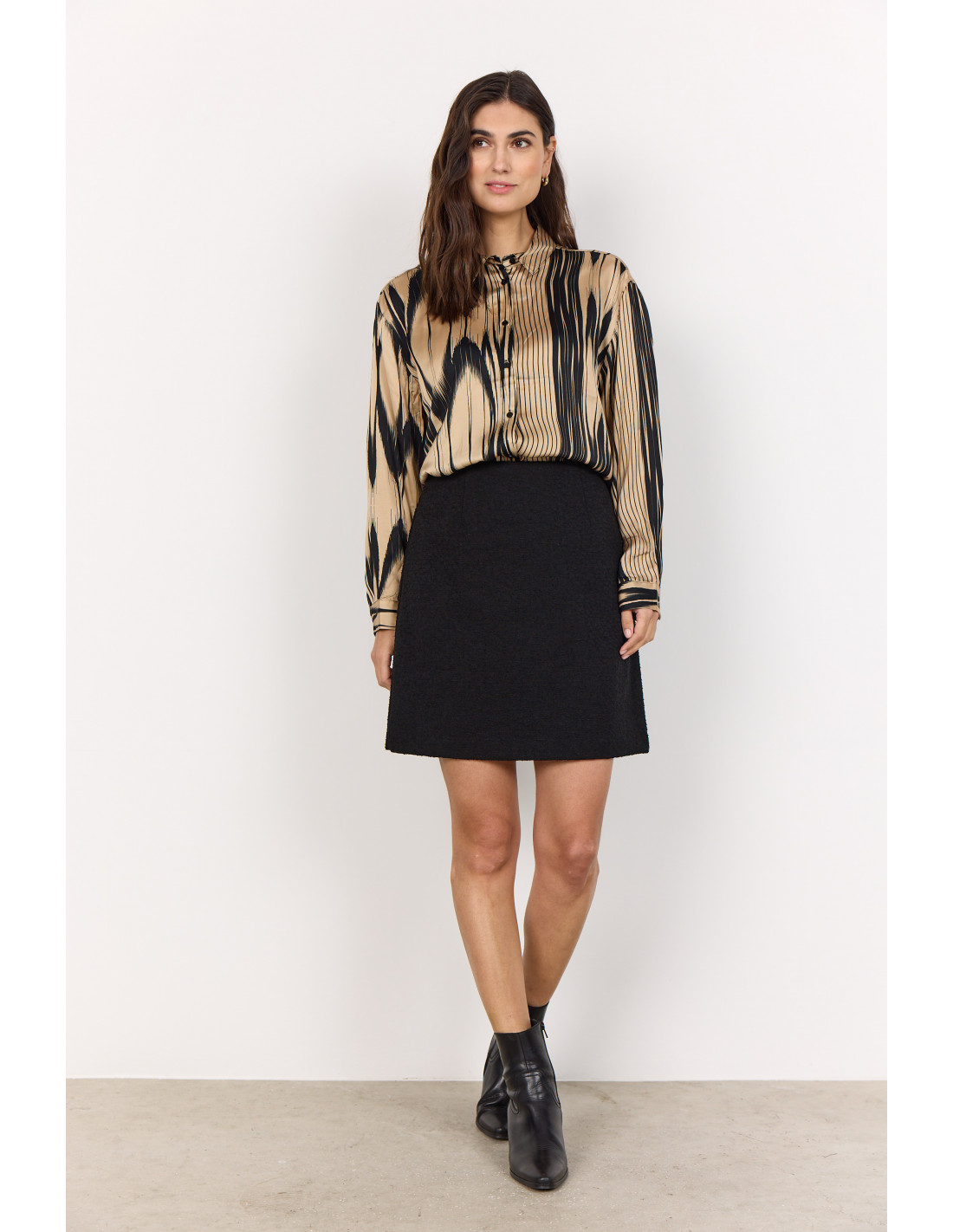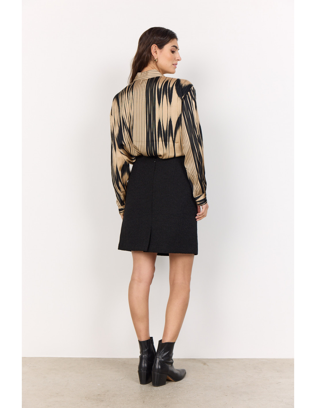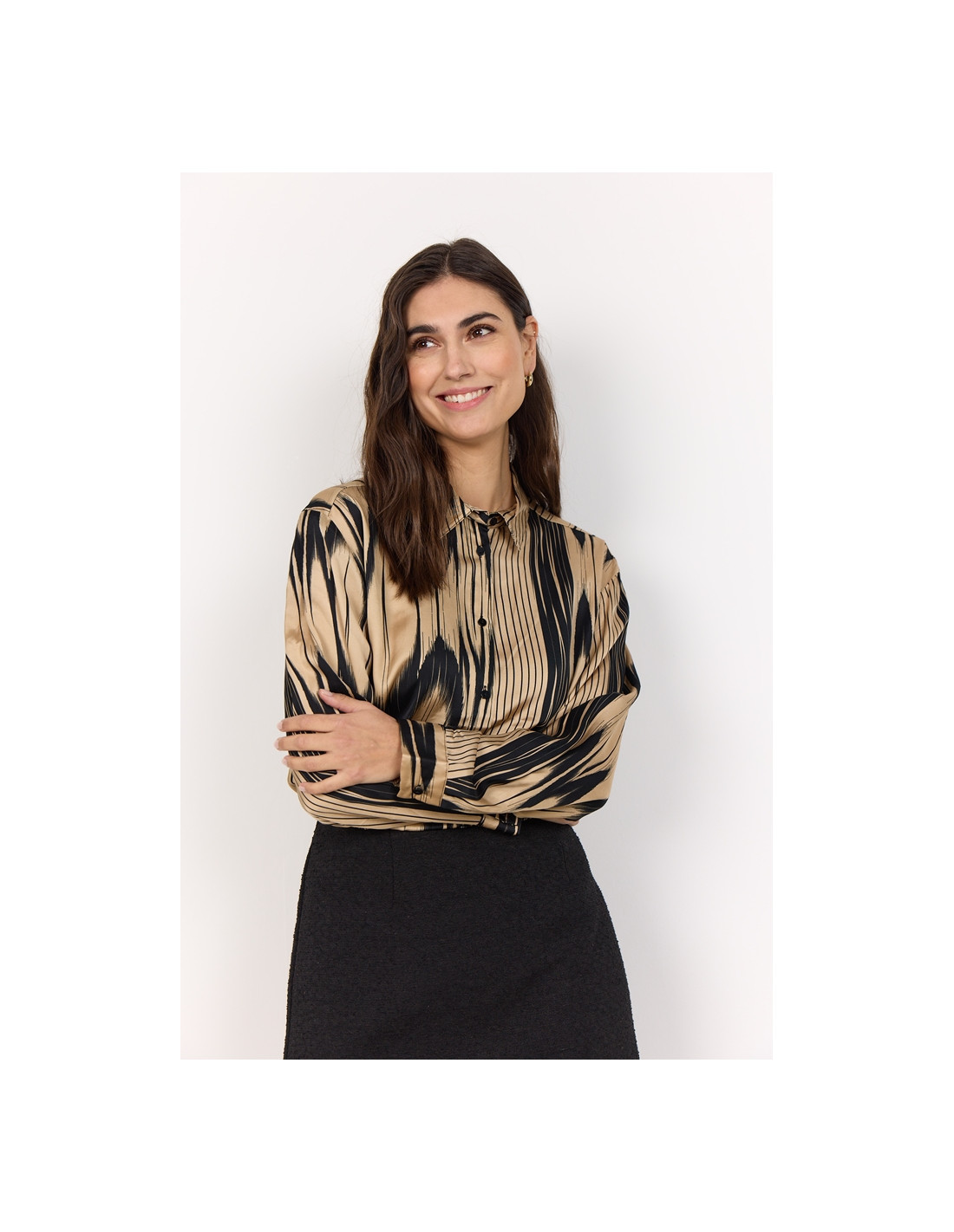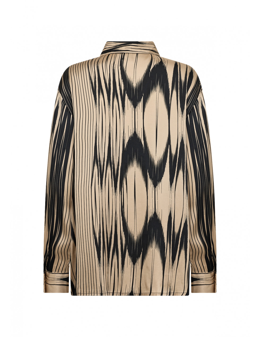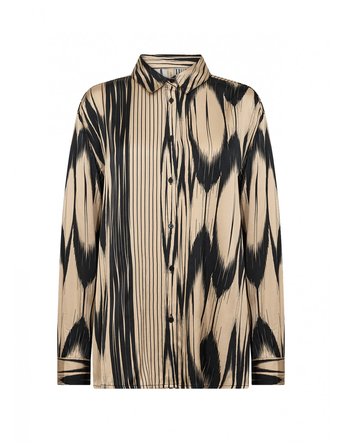 Den har en klassisk krage, knappelukking, lange ermer og et slående abstrakt trykk. Denne skjorten kan kombineres med skreddersydde bukser eller denim for et stilig utseende.