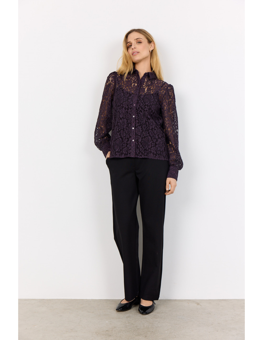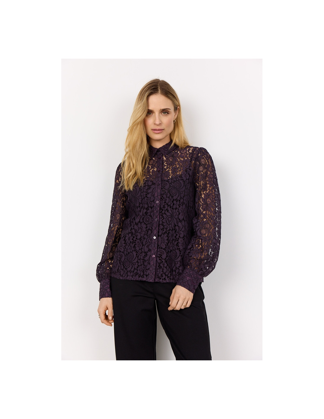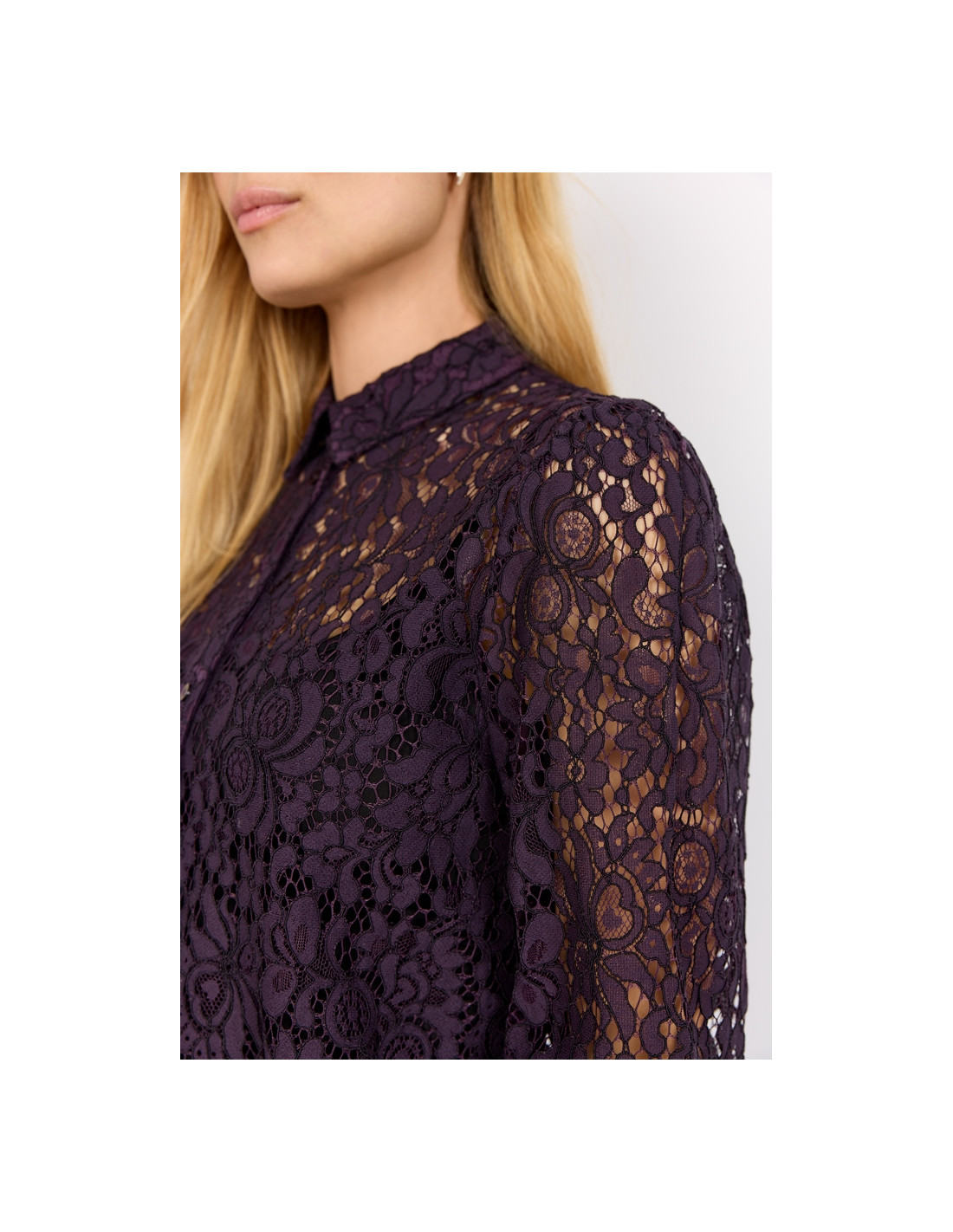SC-Nilla 2 er en vakker skjorte laget av en fin blandingskvalitet. Skjorten har en klassisk krage, knappestolpe, lange ermer og et fint blondemateriale. Style den med en strikket vest og noen bukser for et lag-på-lag-look.