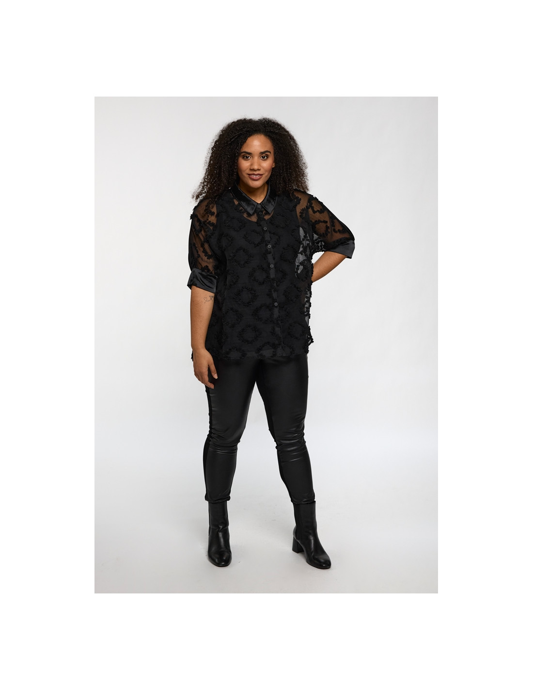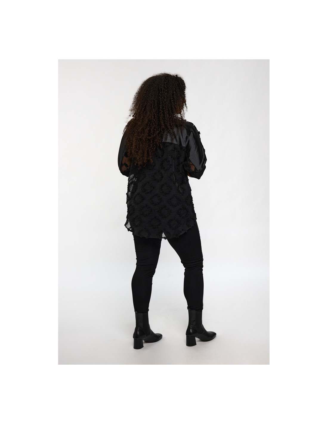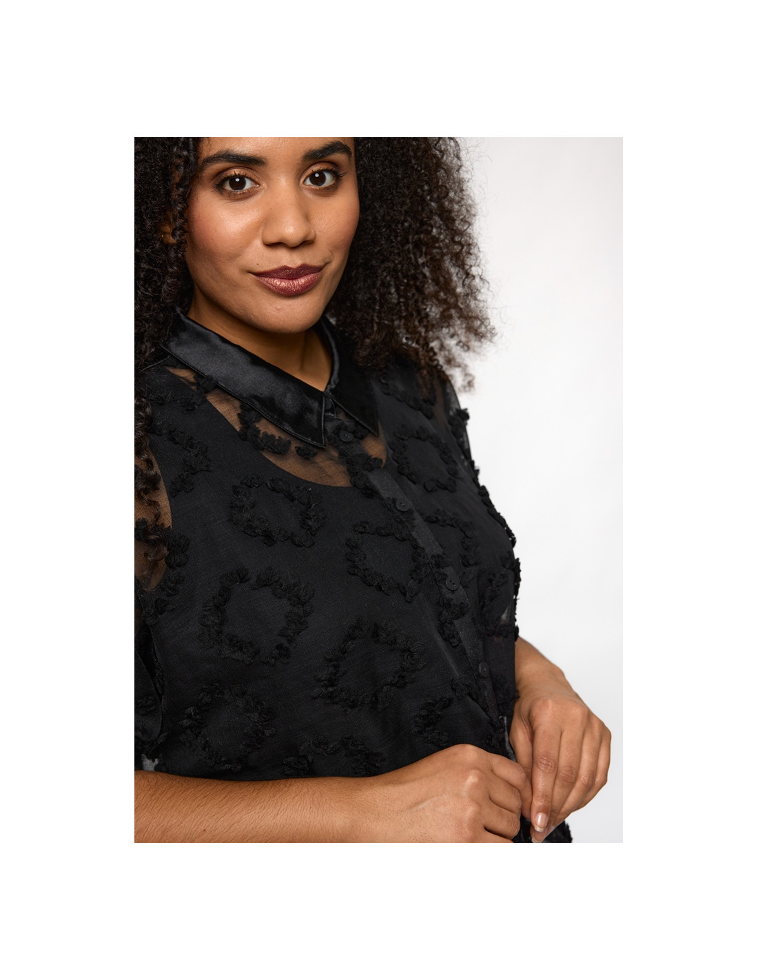 En lett og stilig bluse i 100 % polyester med et elegant svart utseende. Designet har en klassisk skjortekrage og full knappelukking, lange ermer og en rett passform, noe som gjør blusen ideell for både jobb og fritid.