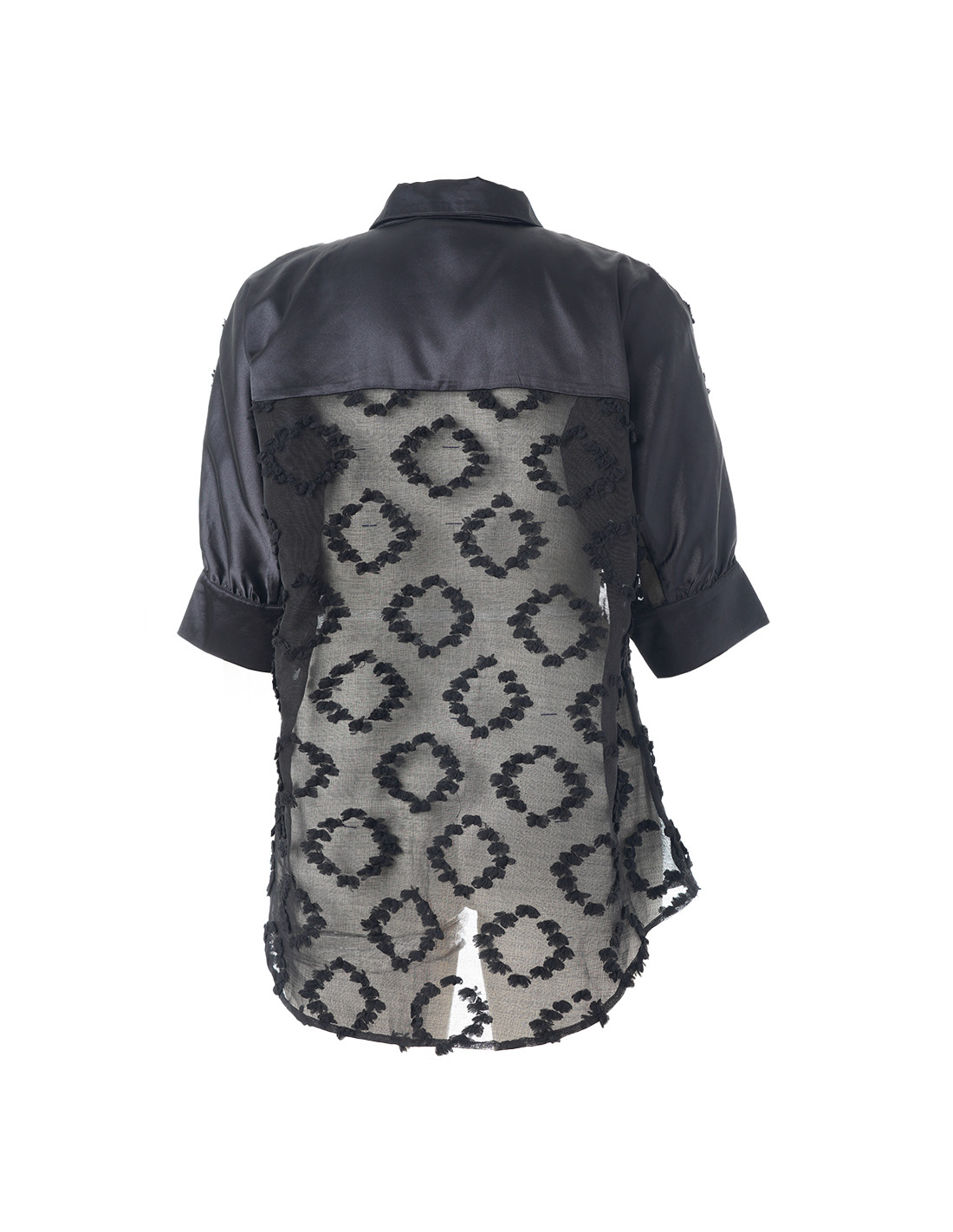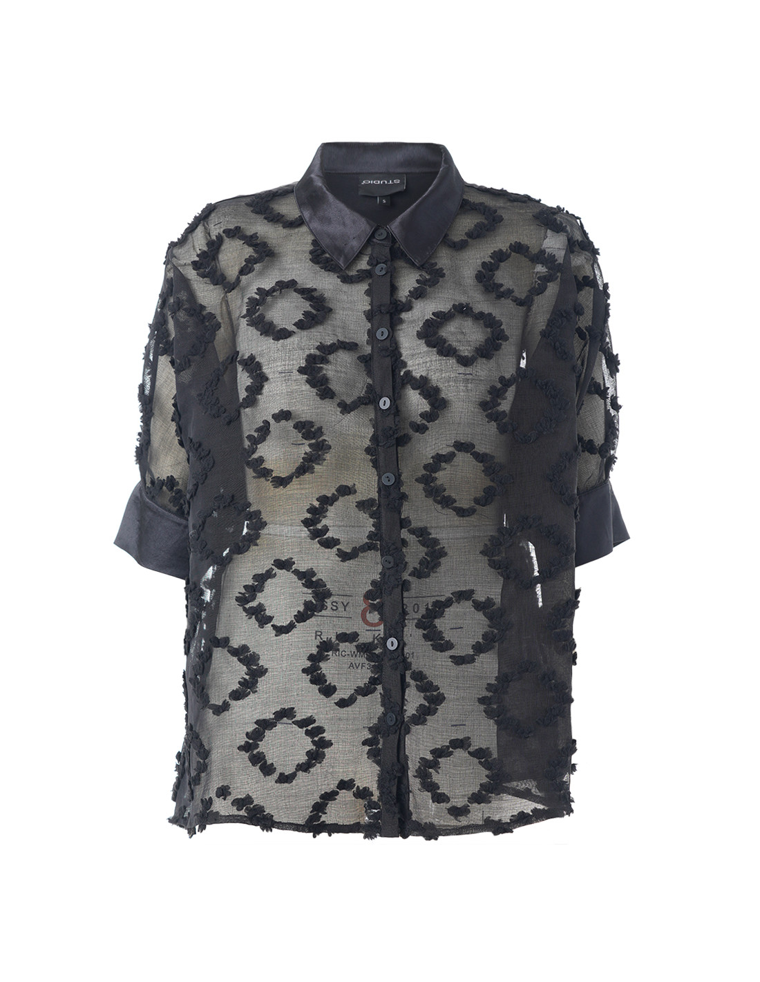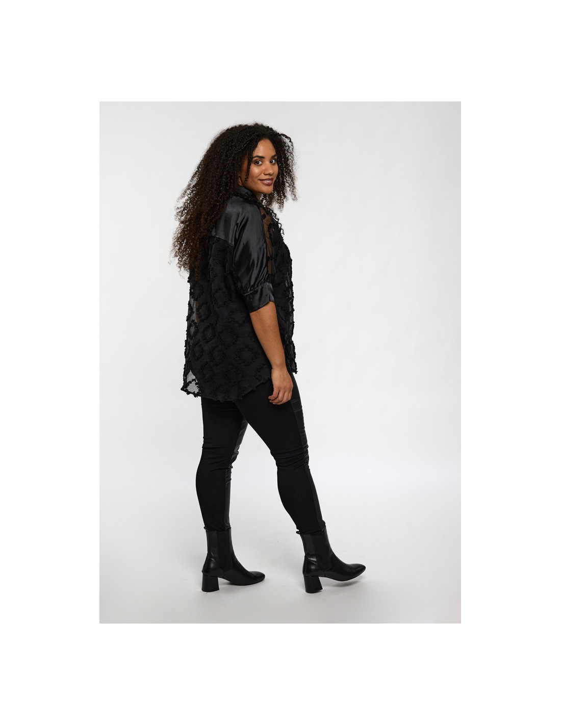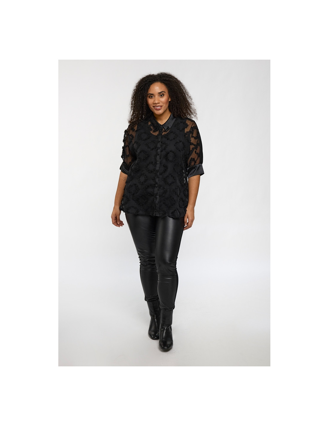 En lett og stilig bluse i 100 % polyester med et elegant svart utseende. Designet har en klassisk skjortekrage og full knappelukking, lange ermer og en rett passform, noe som gjør blusen ideell for både jobb og fritid.