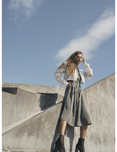 Se på denne tøffe boleroen med strukturert mønster som gir et moderne og eksklusivt uttrykk.