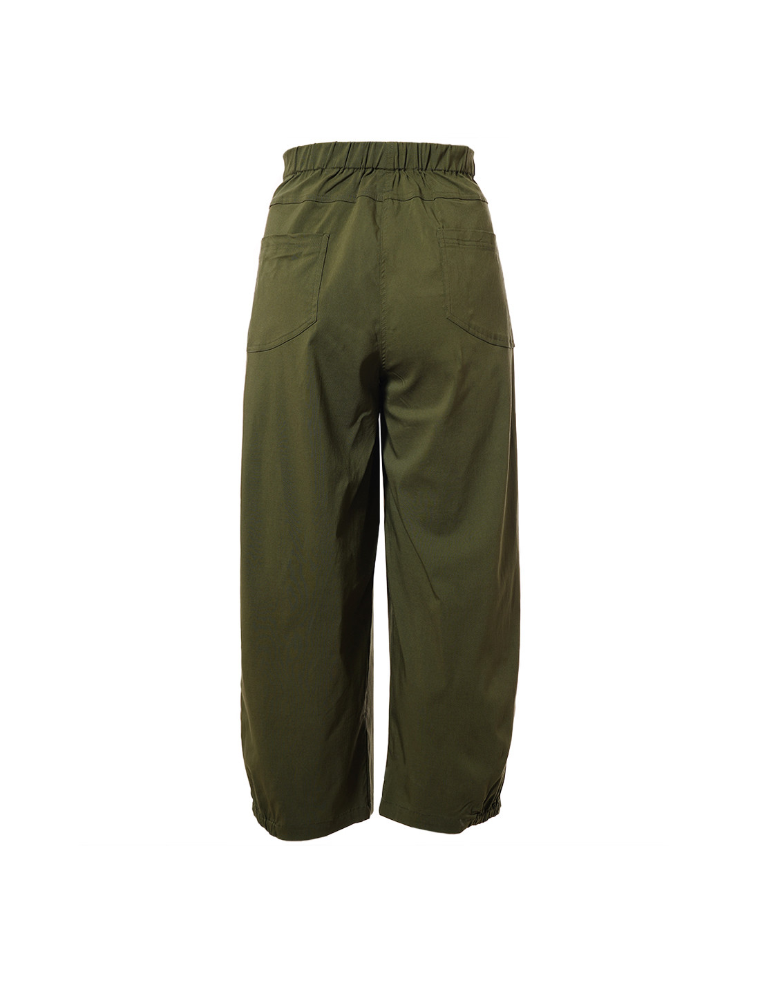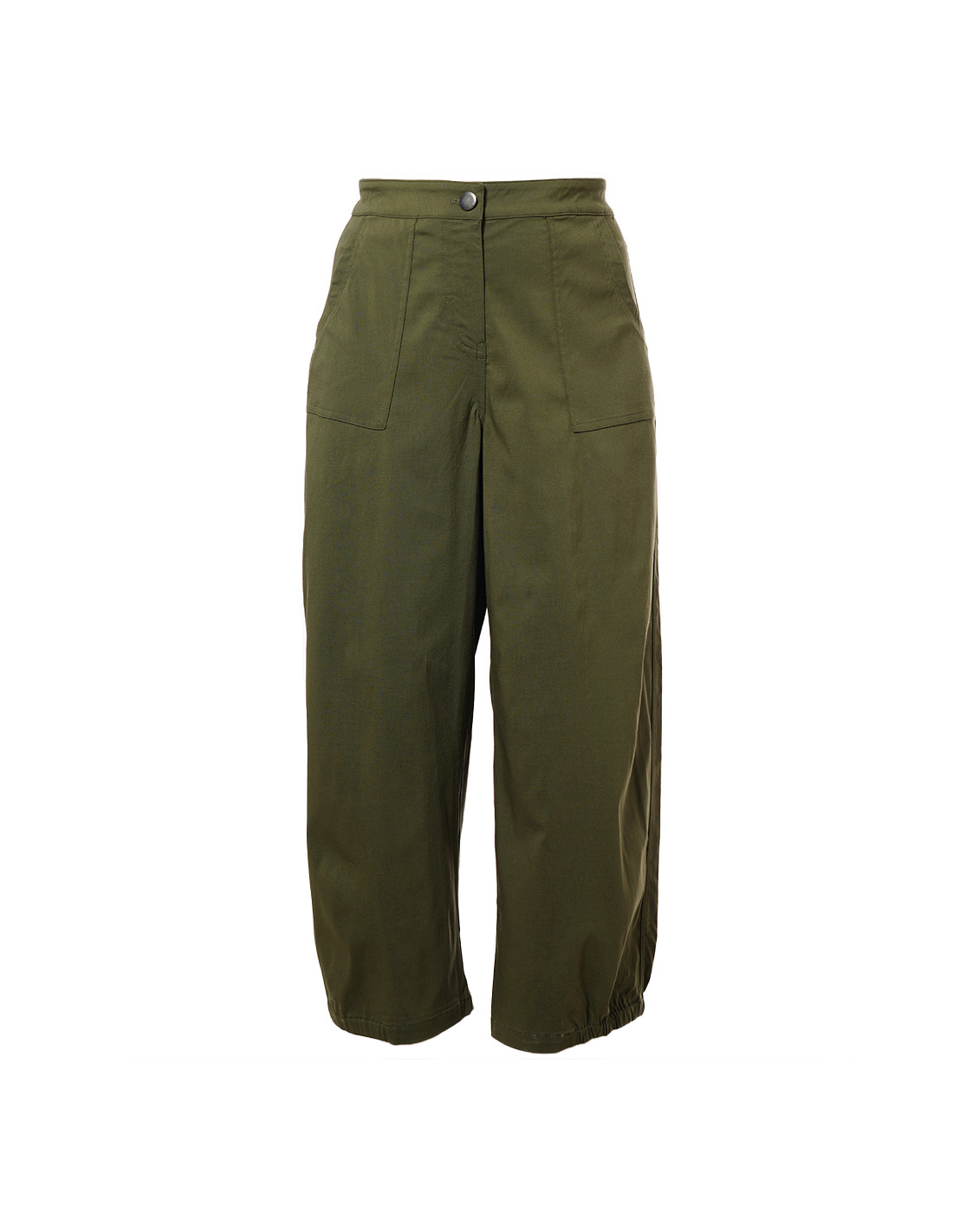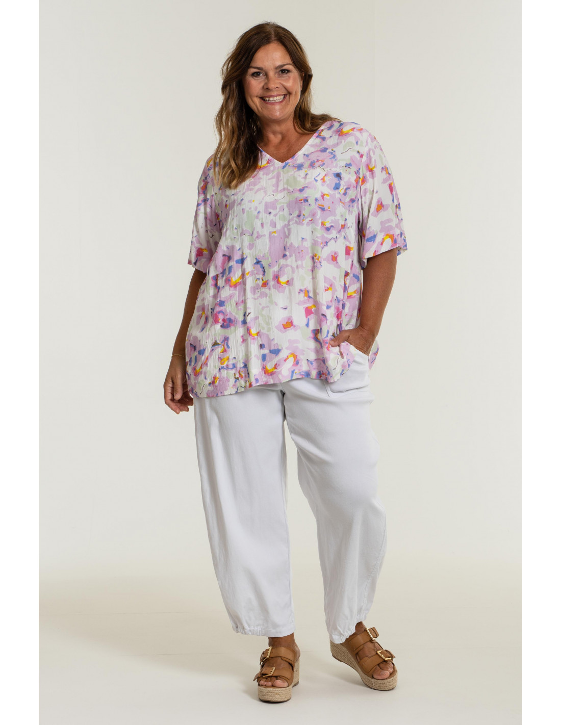 Høykvalitets bengalinbukse i elastisk viskoseblanding. Løs passform med brede ben og strikkkant i linningen bak. Glidelås og knappelukking i front. Generøse festede lommer foran og bak. Elastiske avslutninger på benavslutninger på sidene.