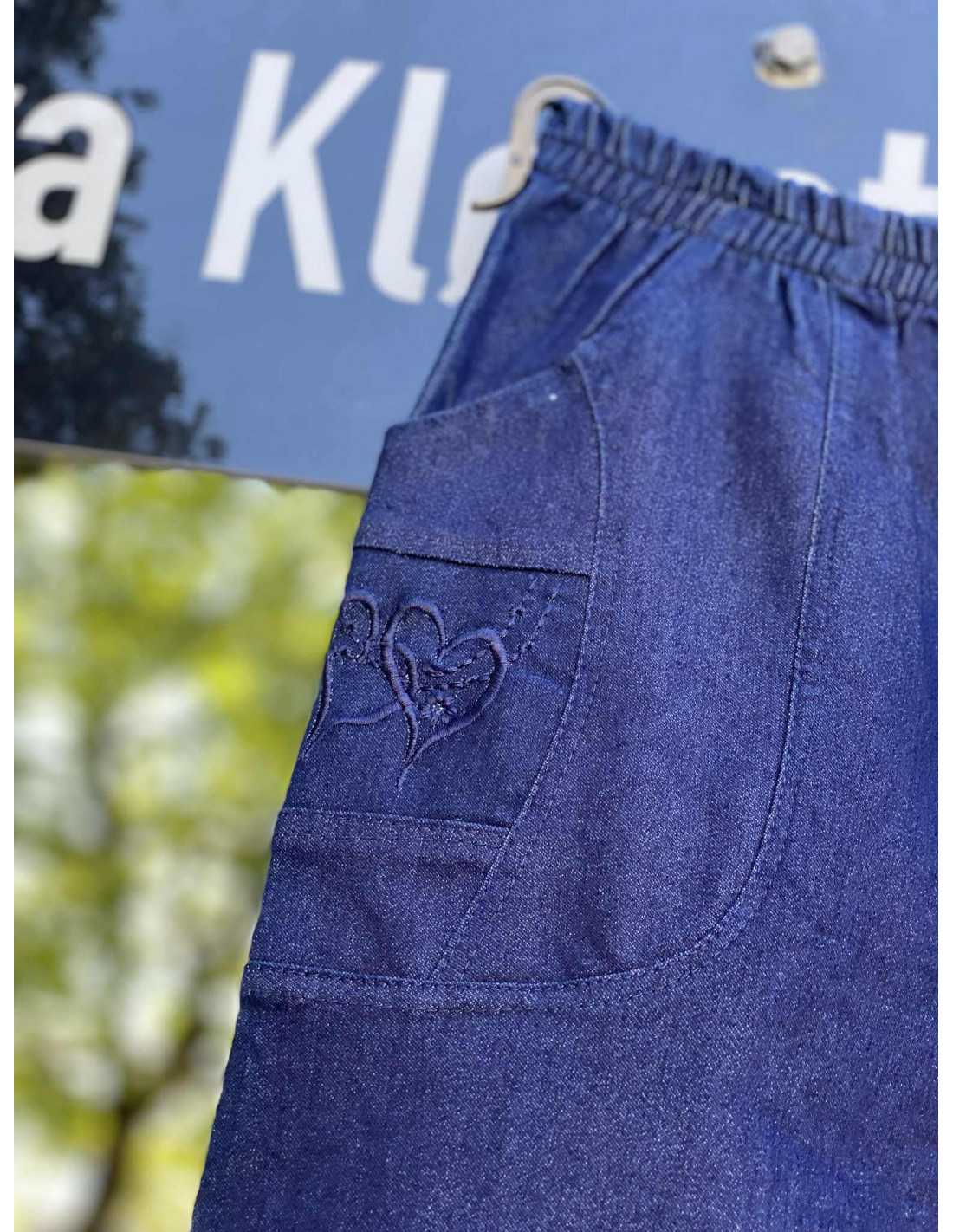 CHERRY BERRY i mørk Denim med hjerter på lommene.