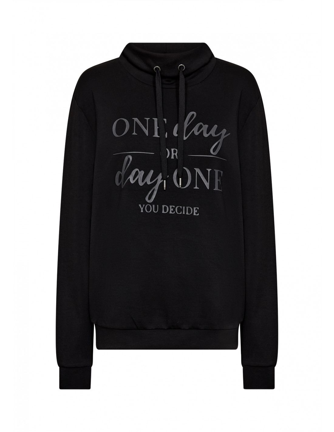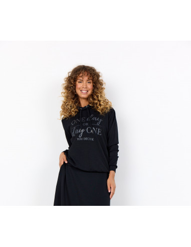 SC-BANU 256 er en genser laget av 48 % modal, 48 % polyester og 4 % elastan. Den har en høyhalset krage med snøring og et motiverende trykk foran. Kombiner den med jeans eller leggings for et avslappet og komfortabelt utseende.