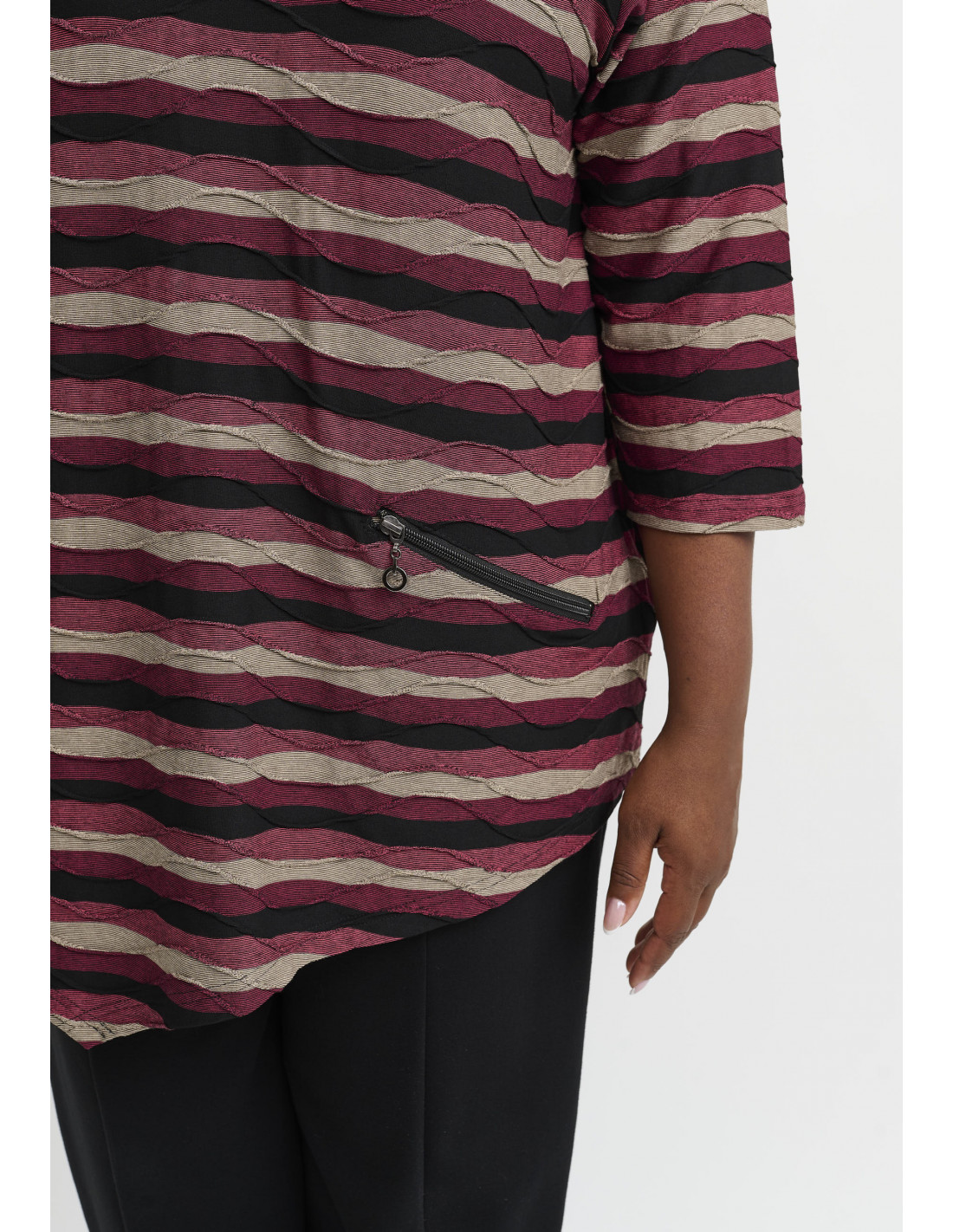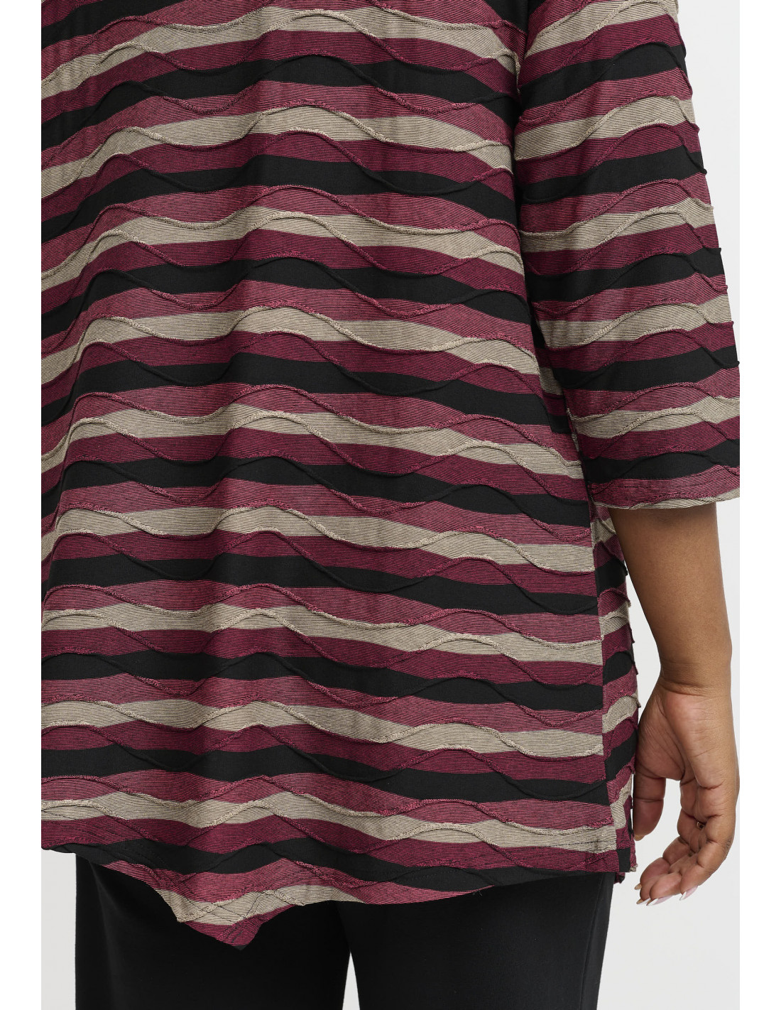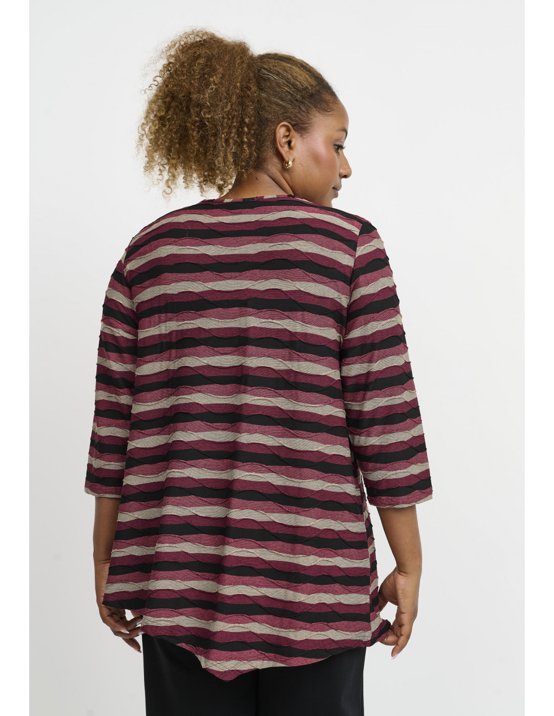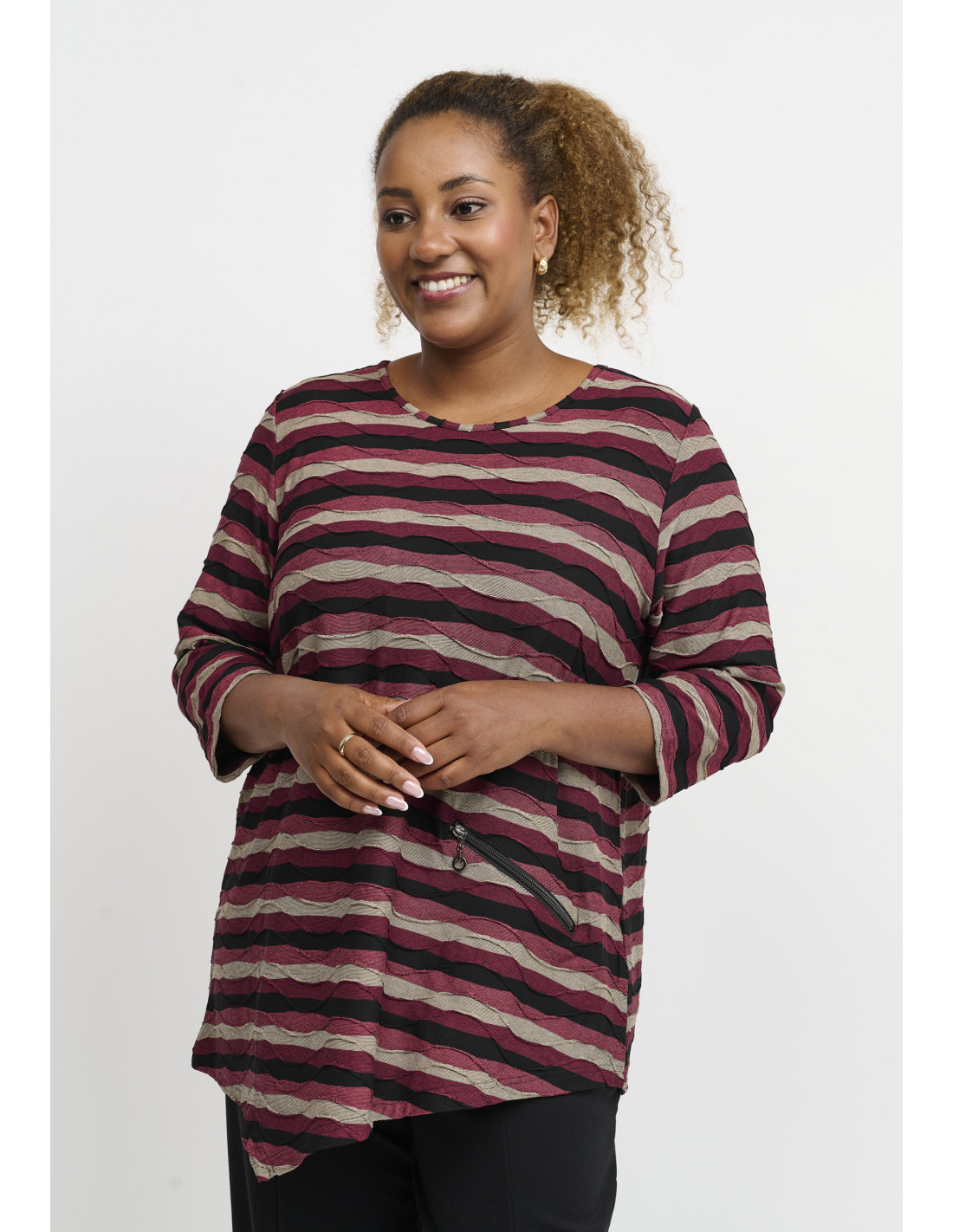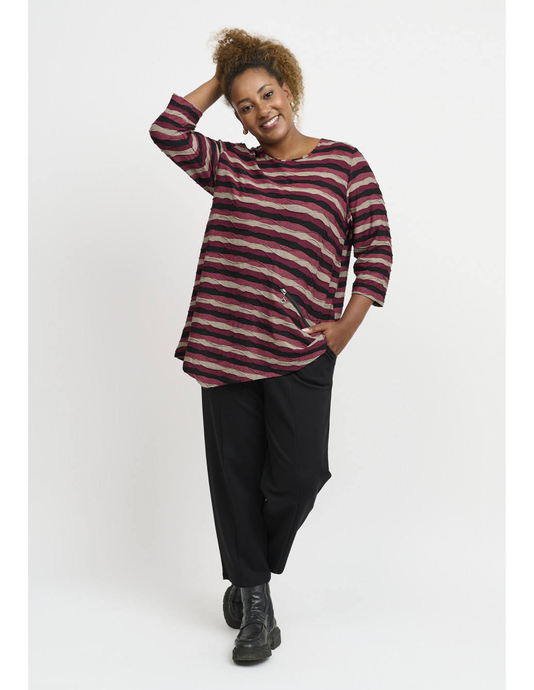 En avslappet topp med vakre striper i varme toner og et litt asymmetrisk snitt. Den myke viskosen med stretch gir bevegelsesfrihet og komfort hele dagen. Den avslappede passformen er løs og lengre bak, noe som gir den en moderne og flatterende silhuett.