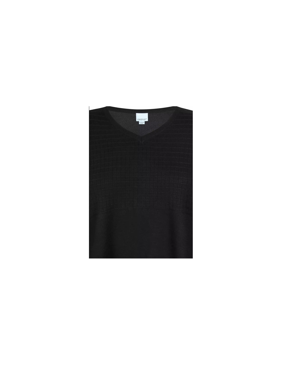 Zhenzi Kogle 994- En genser med vakre runde lange ermer. Ribbede mansjetter og kant. Lett V-hals. Vakker rutete preging øverst.