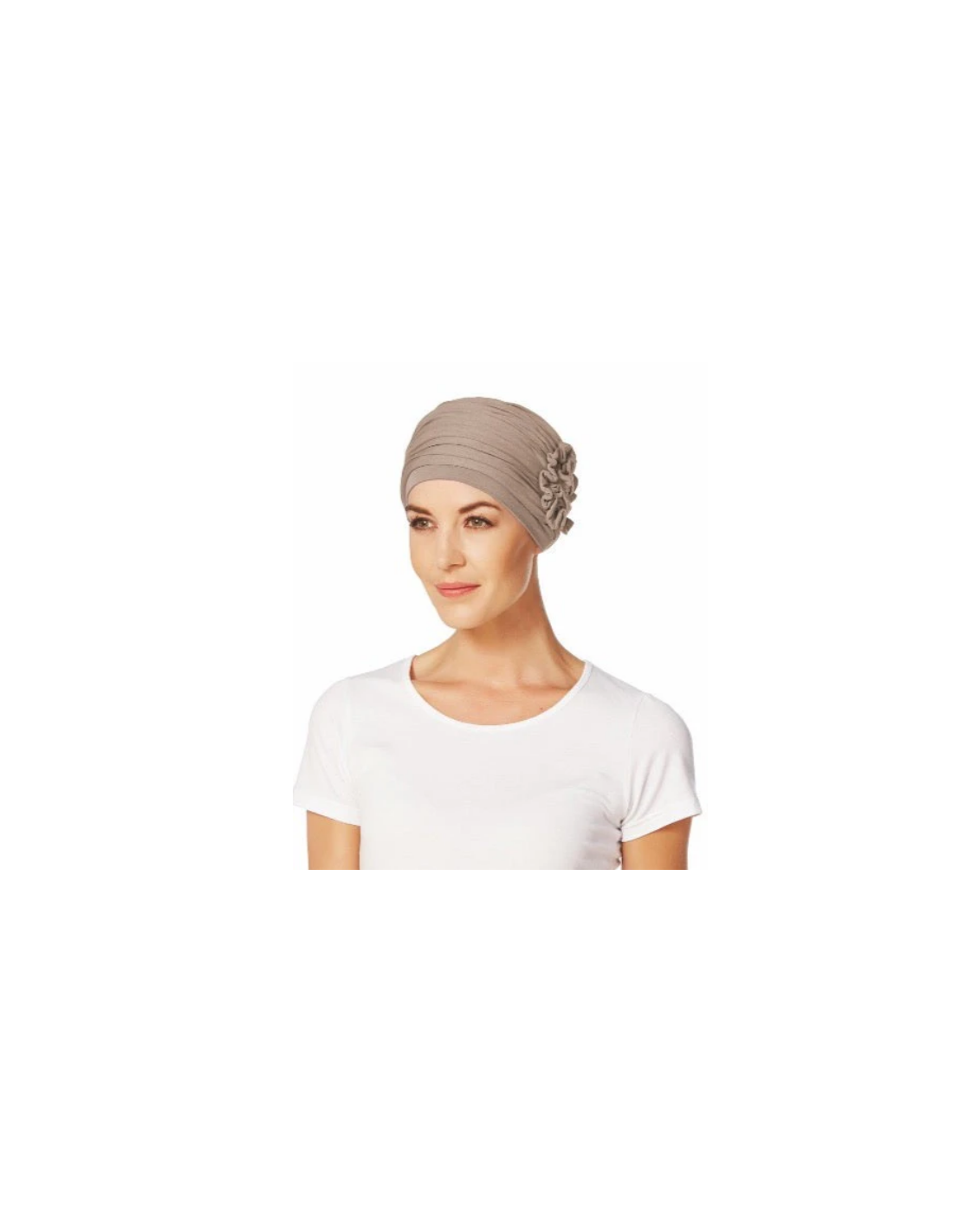 Lotus-turbanen er et elegant antrekk du ikke vil gå glipp av. Den har en tettsittende lotusblomst på siden med dekorative folder og elegant drapering foran og bak. Den er perfekt for alt mellom et sporty, stilig og moderne utseende.
