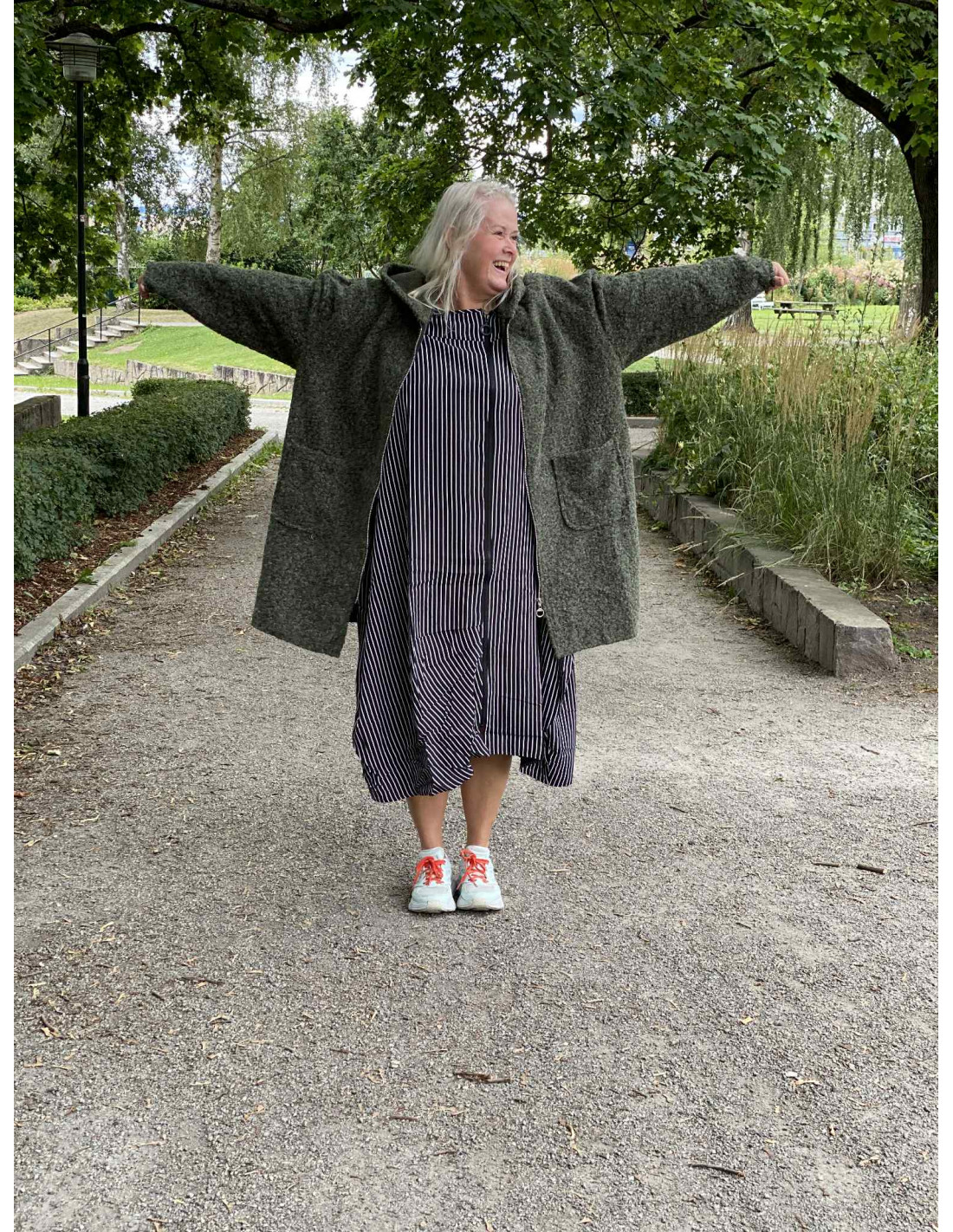 Modellen har her på seg den største- men hadde fint klart seg med den minste.