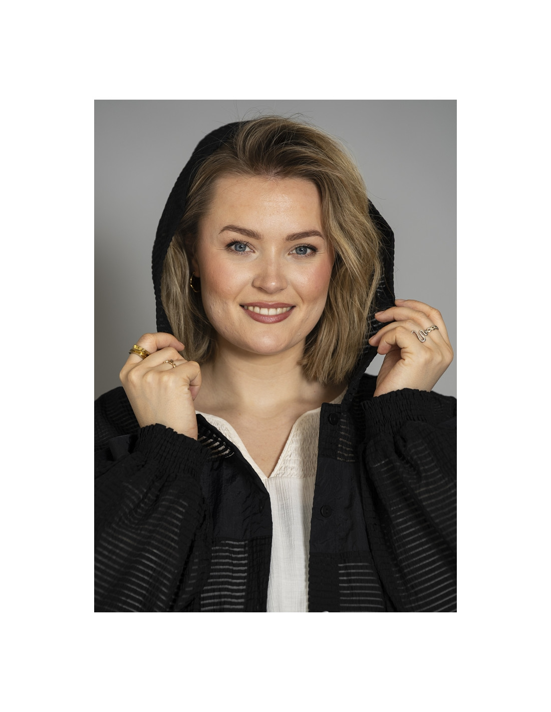 En tidløs cardigan i 54 % bomull og 46 % nylon som kombinerer naturlig komfort med slitesterk struktur. Modellen har klassisk knappelukking foran og lange ermer, mens den enkle silhuetten gjør den enkel å style over kjoler, bluser og topper. Den svarte fargen støtter et stilig og allsidig utseende som passer til enhver garderobe.