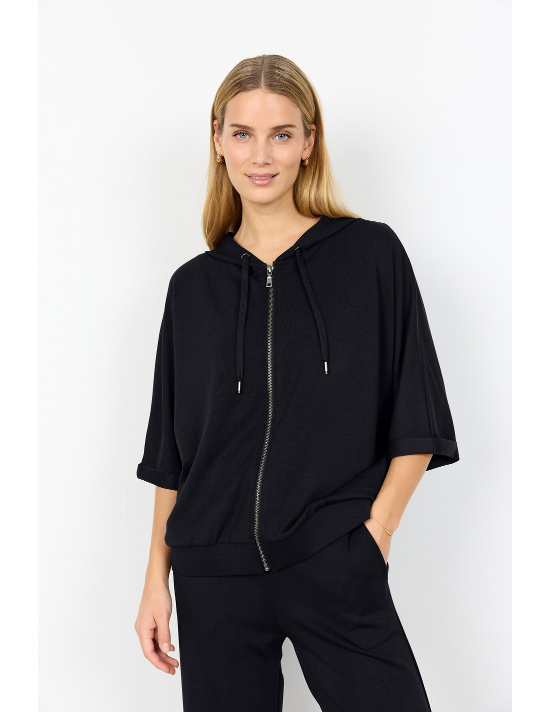 SC-BANU 282 er en stilig genser laget av 48 % modal, 48 % polyester og 4 % elastan. Den har glidelåslukking foran, hette med snøring og korte ermer med oppbrettede mansjetter. Denne kule gensergenseren passer elegant til jeans.