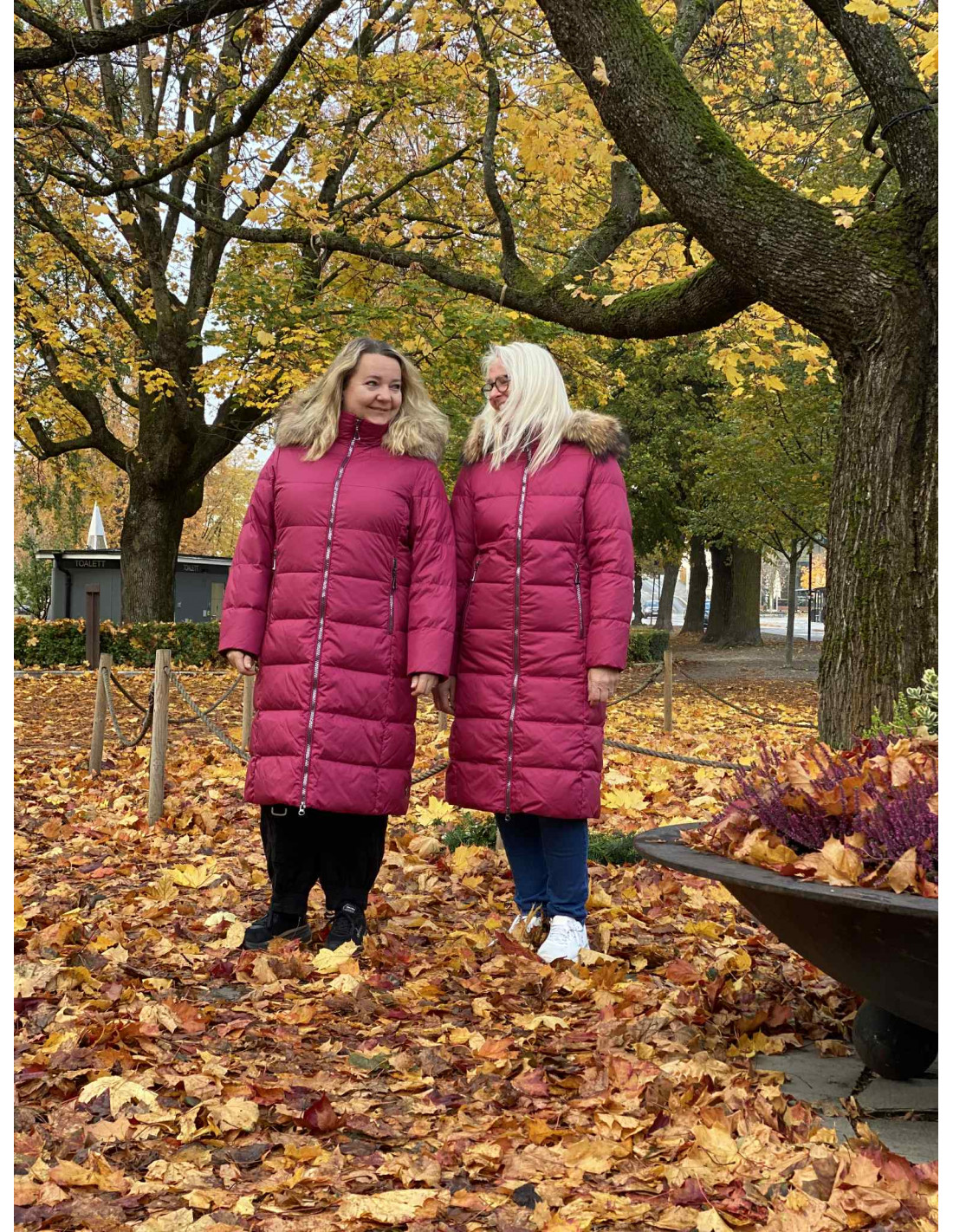 Luksuriøs dunkåpe med dunfyll og ekte vaskebjørnpels på hetten fra Danwear i vind- og vannavvisende kvalitet. Merket har alltid vært kjent for sin rene komfort og funksjonalitet. Kåpen har glidelåslukking foran, diverse lommer med glidelåser og en innerlomme. I tillegg har den en hette med en vakker pelskant.