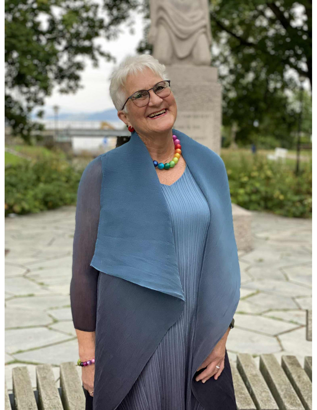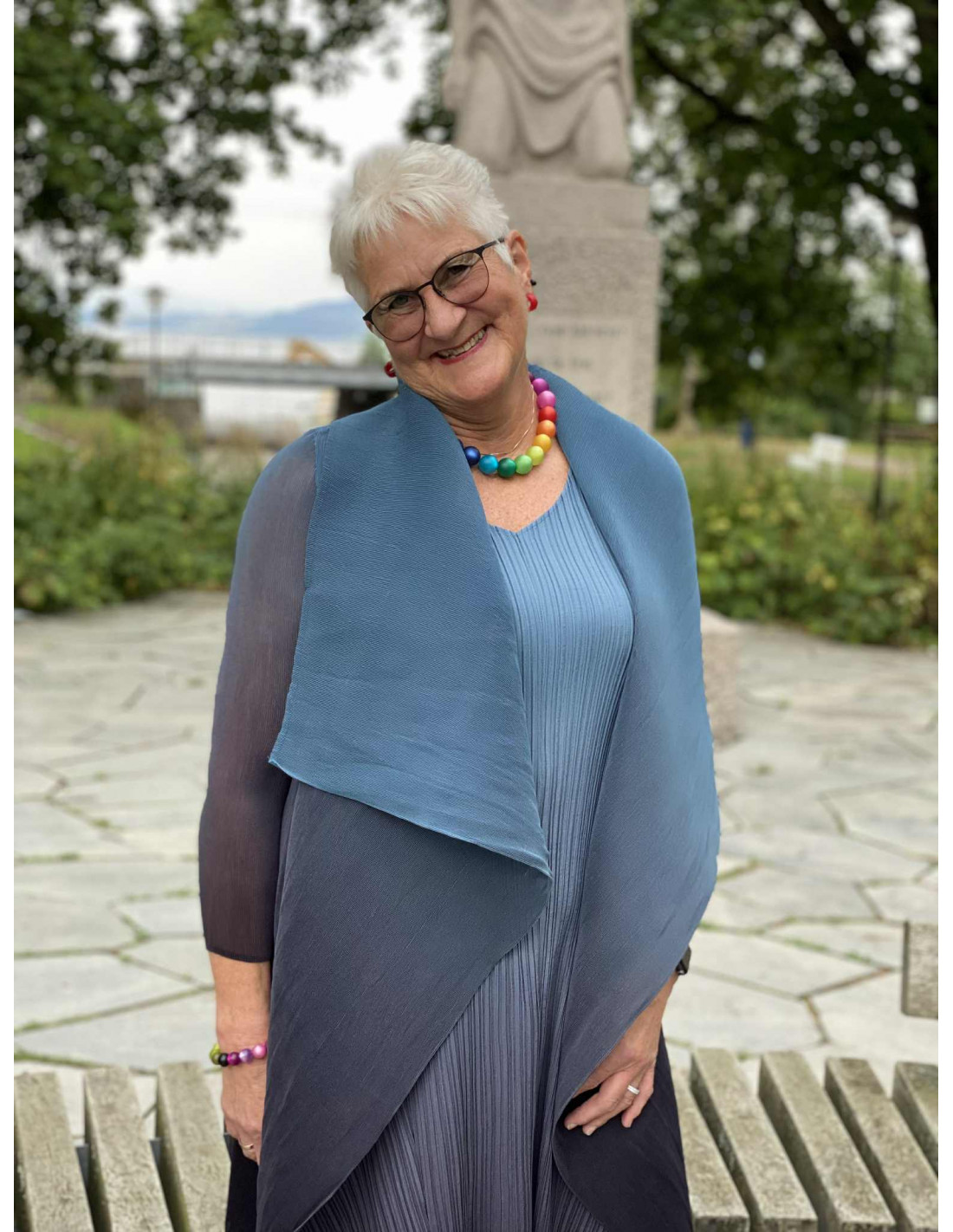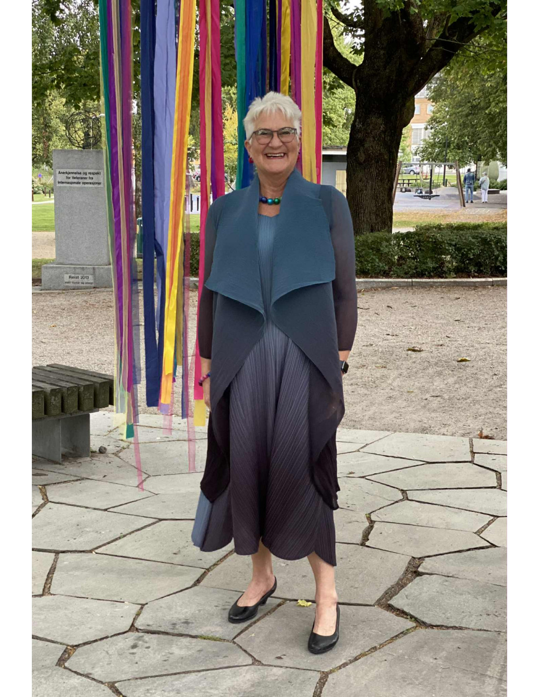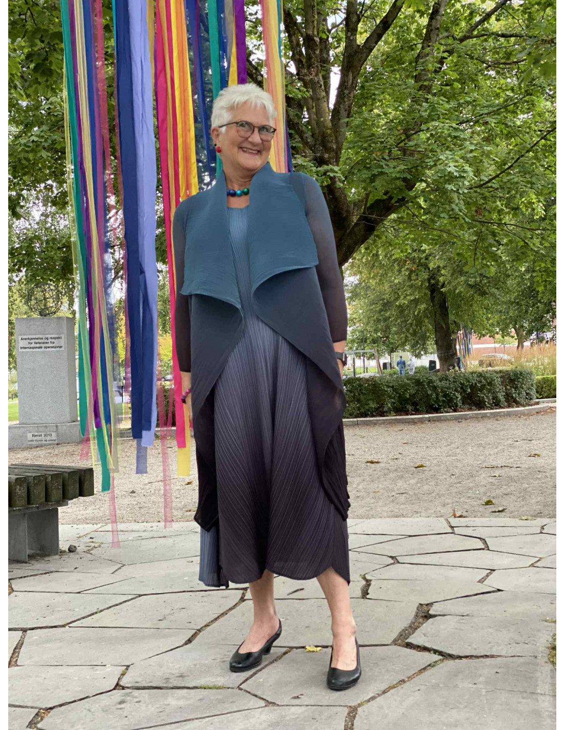 Et håndlaget plagg som passer små og større størrelser, da plisseene er meget bevegelige. Nesten som stretch.