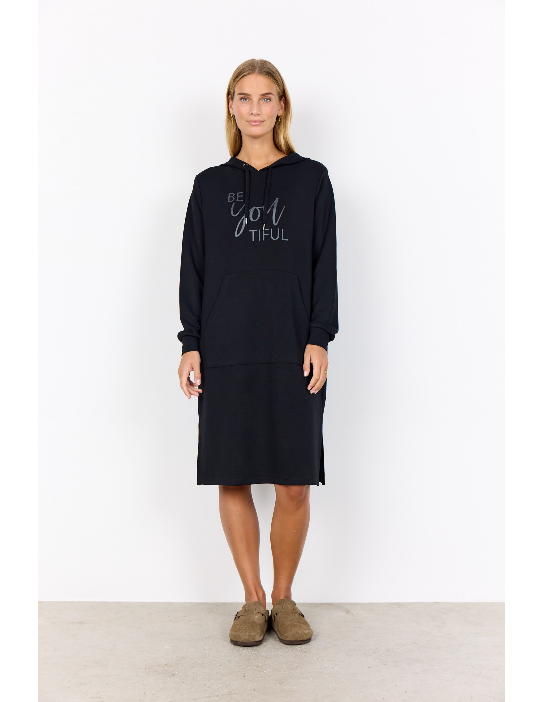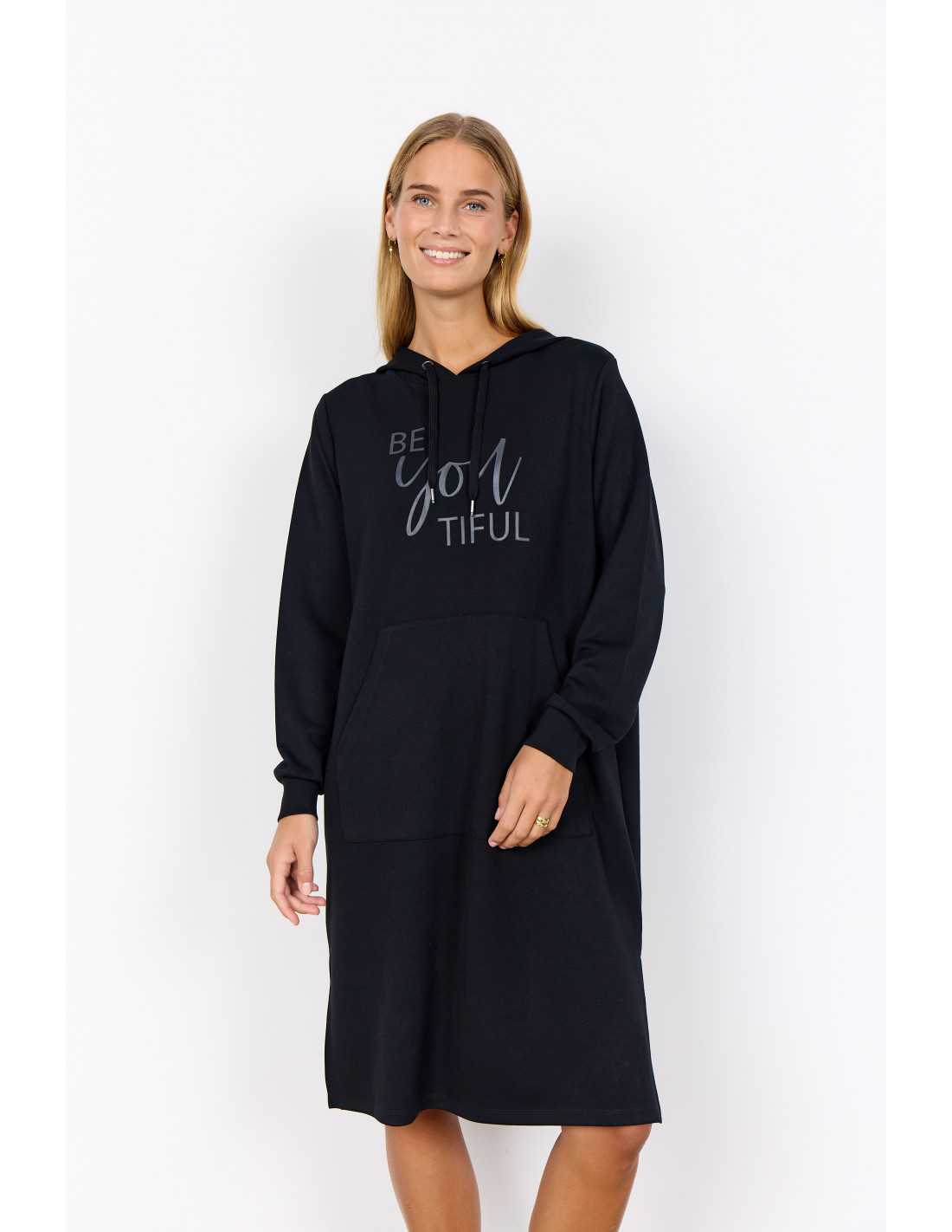 SC-BANU 259-kjolen er laget av 48 % modal, 48 % polyester og 4 % elastan. Den har hette, lange ermer, en lomme foran og et trykt grafikk foran. Kombiner den med joggesko for et avslappet utseende, eller legg den over leggings for ekstra varme. Material EN: 48 % modal, 48 % polyester, 4 % elastan