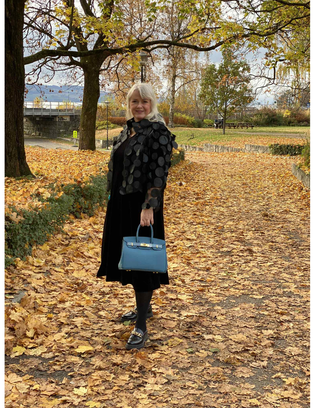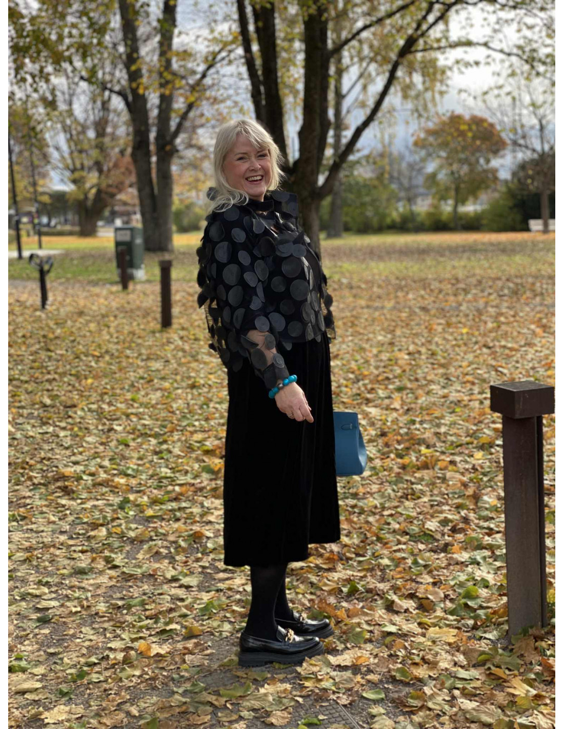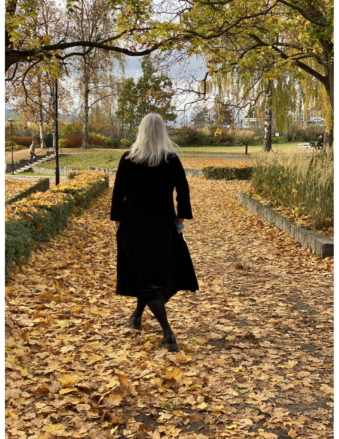 En vakker kjole i velour, som har et nydelig snitt.