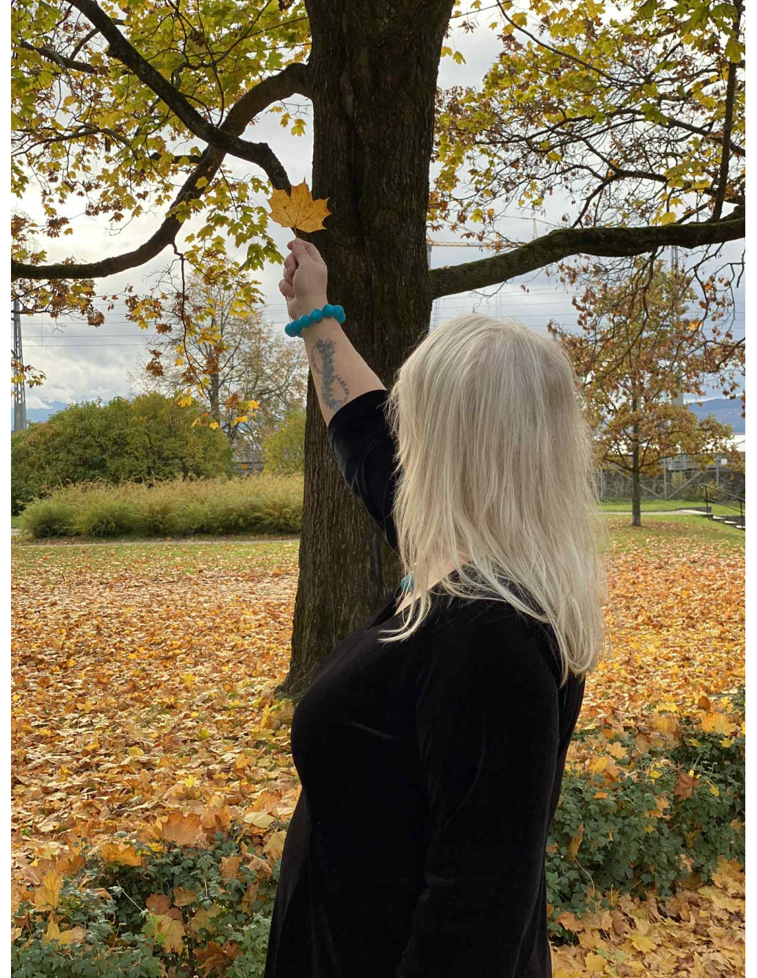 Modellen i sort kjole har på seg str 3