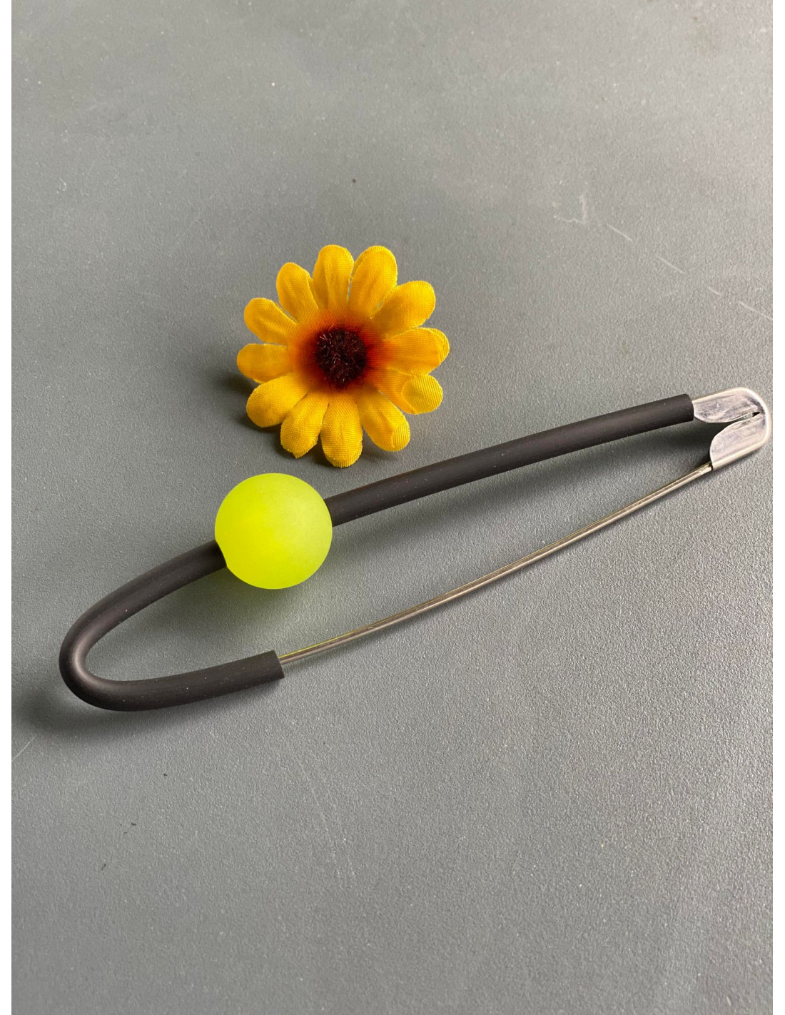 Nåla er ca 13 cm lang og diameter på perlen er 2 cm.