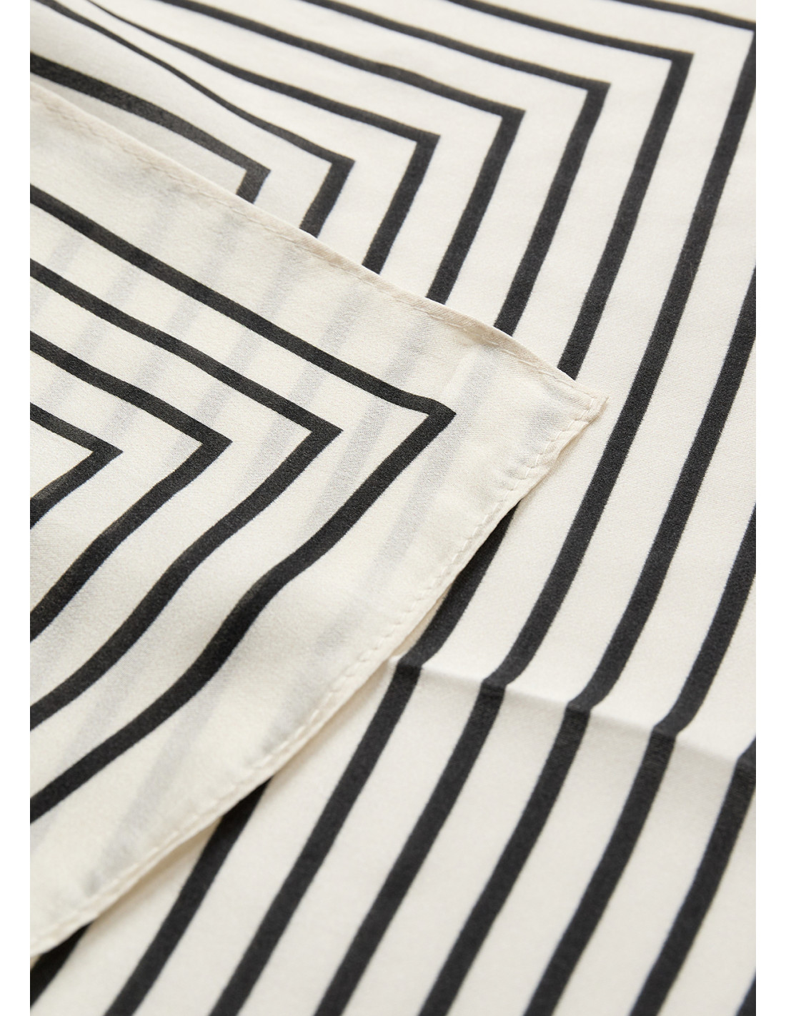 SC-RAHIL 1 er et luksuriøst skjerf laget av 100 % silke. Dette fine tilbehøret har en jevn tekstur med et geometrisk stripete mønster. Den kan utfylle både formell og uformell antrekk for et raffinert utseende.