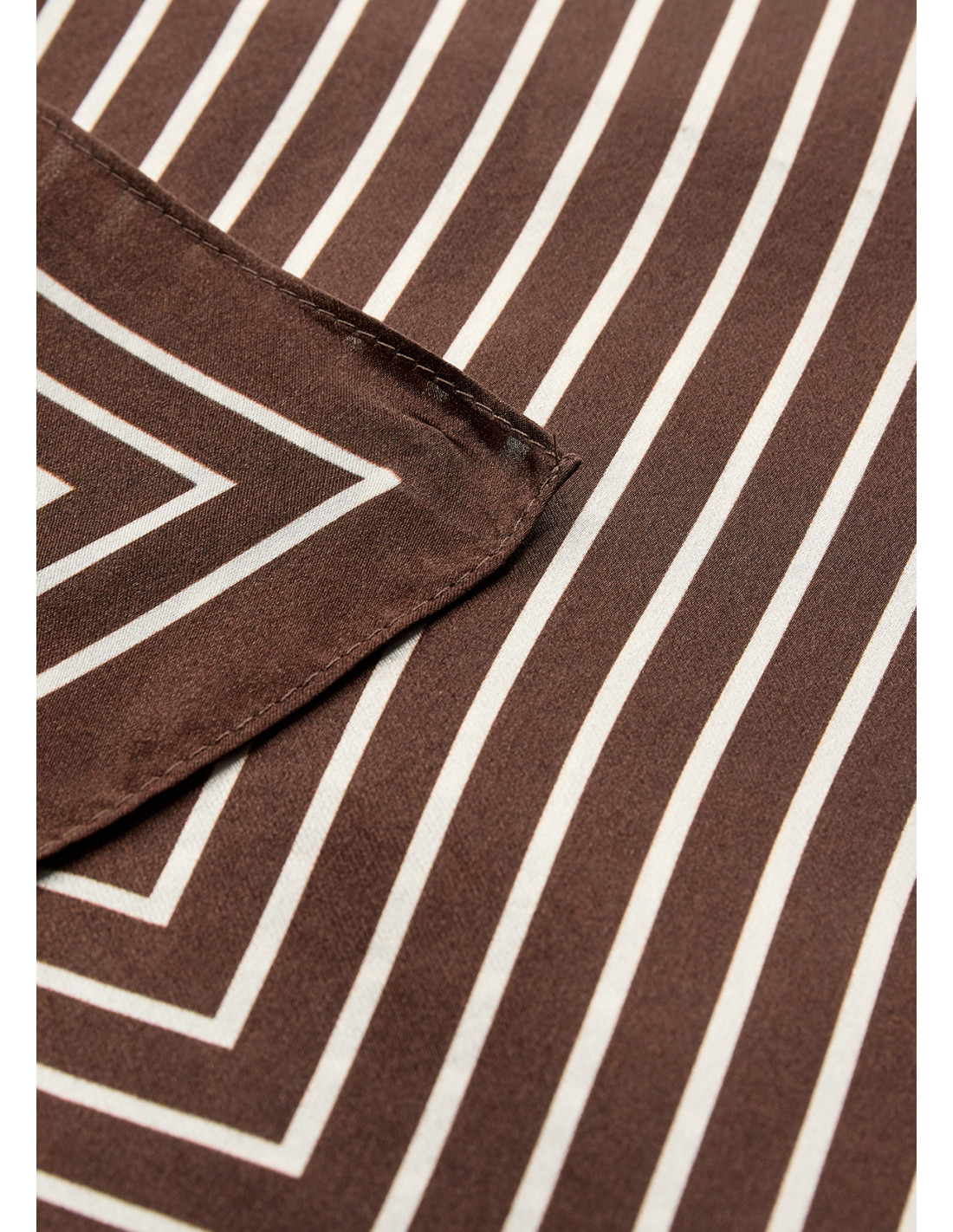 SC-RAHIL 1 er et luksuriøst skjerf laget av 100 % silke. Dette fine tilbehøret har en jevn tekstur med et geometrisk stripete mønster. Den kan utfylle både formell og uformell antrekk for et raffinert utseende.