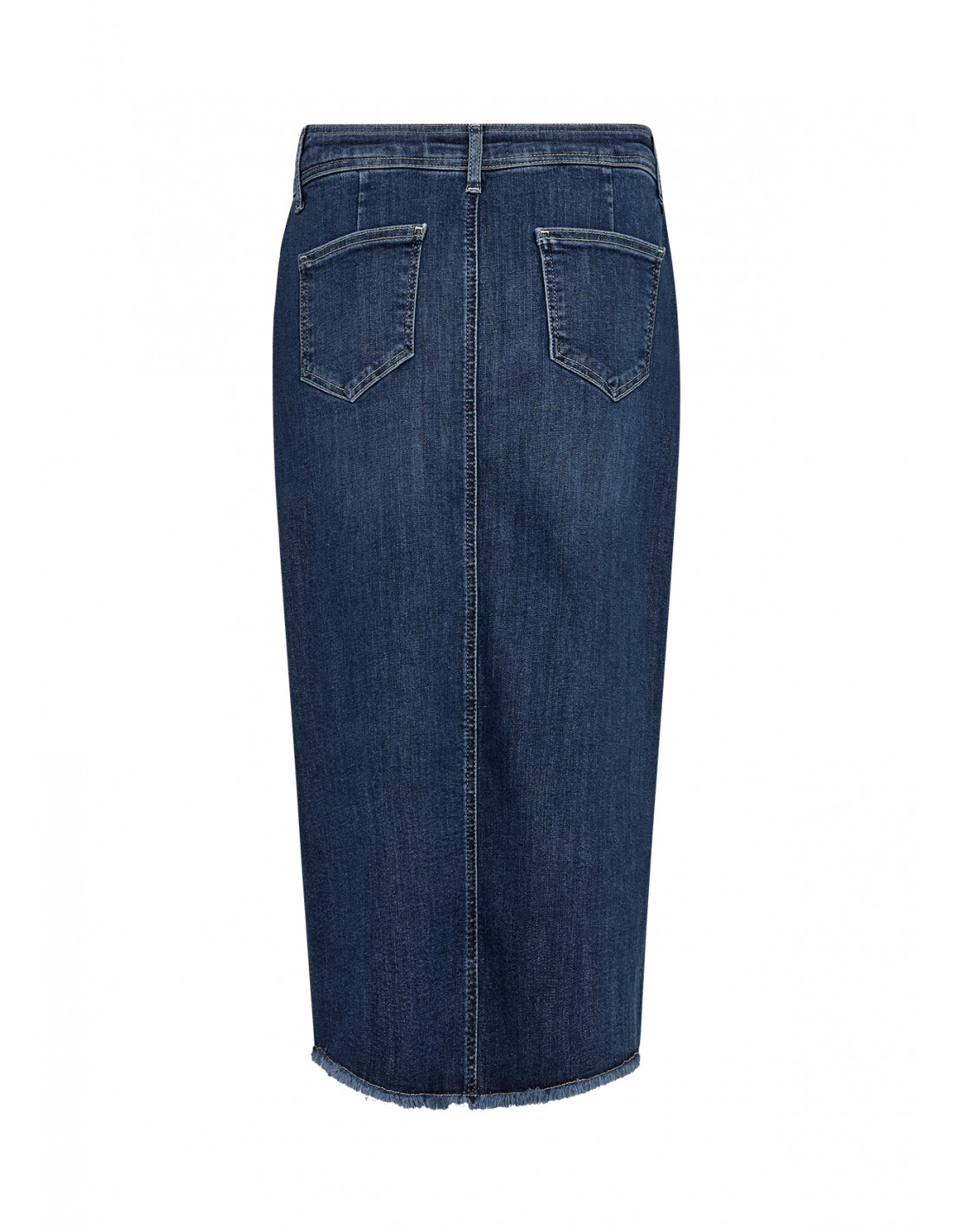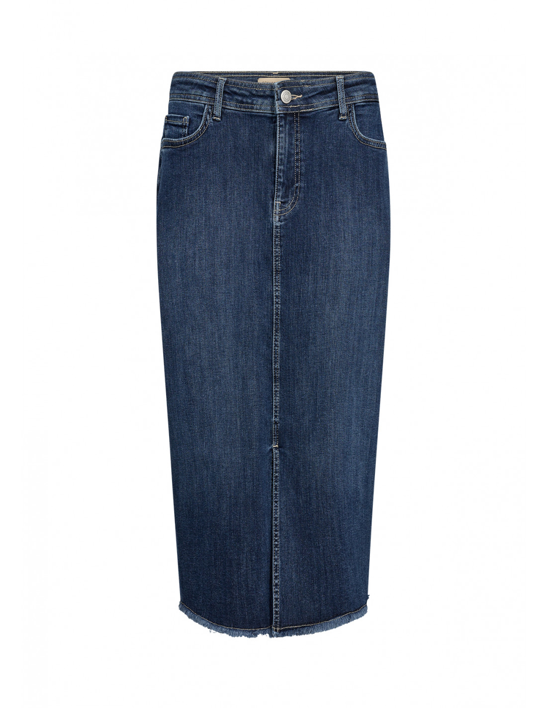 SC-KIMBERLY 29 er et allsidig denimskjørt laget av en komfortabel blanding av 81 % bomull, 17 % polyester og 2 % elastan. Skjørtet har et klassisk design med fem lommer, en knappelukking med glidelåsgylf og en frynsete kant som gir en moderne kant til den knelange silhuetten. Dette skjørtet er ideelt for ulike anledninger, og passer uanstrengt sammen med både figursydde topper og løse bluser, og gir et tidløst grunnlag for ensembler året rundt.