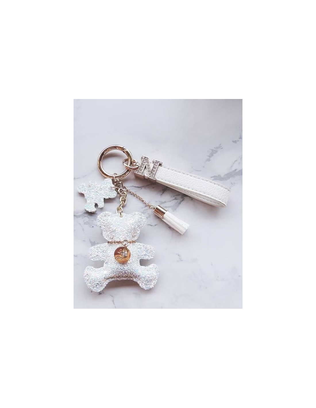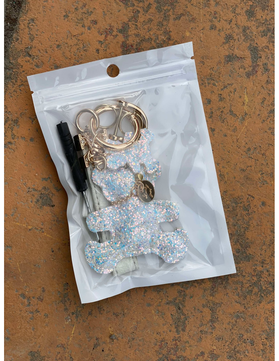 Veskepynt/ nøkkelring. Søt bamse med bling