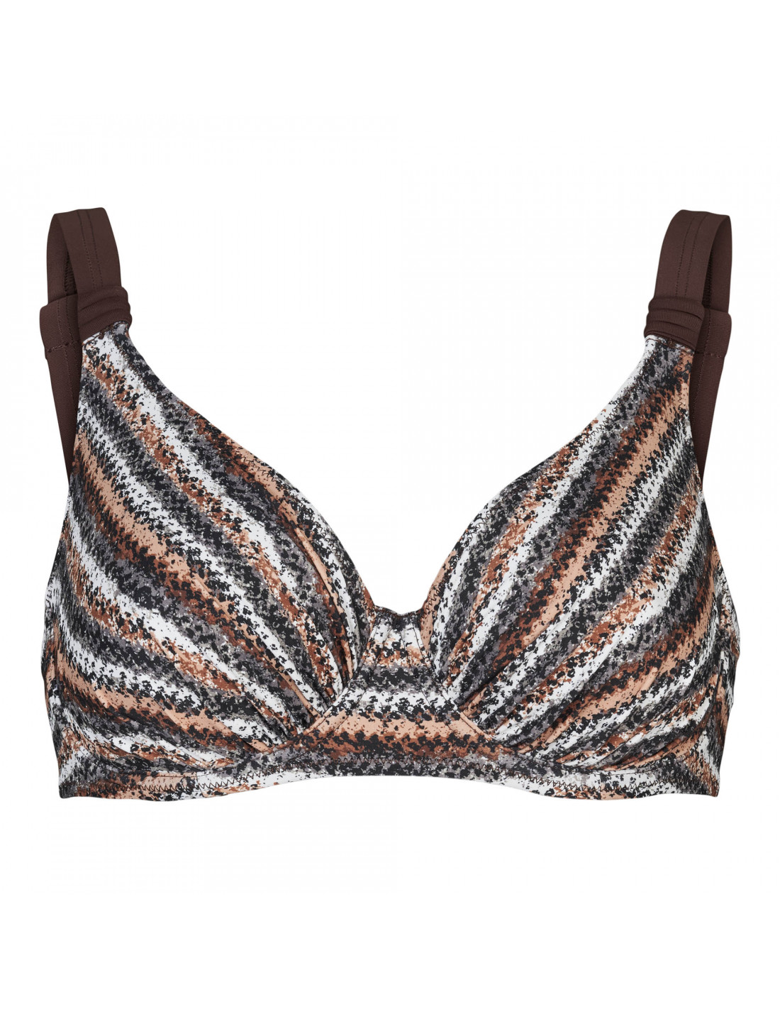 Fin fullcup bikini med bøyler og tynt forede cup’er i glatt stoff, som gir godt løft og støtte opp til H-cup. Ved stroppene er det et justerbart bånd, for å individuelt tilpasse skjæringen på cup. Rynkesøm i nerkant av cup’ene gjør den ekstra fin. Produsert i hurtigtørkende materialer.