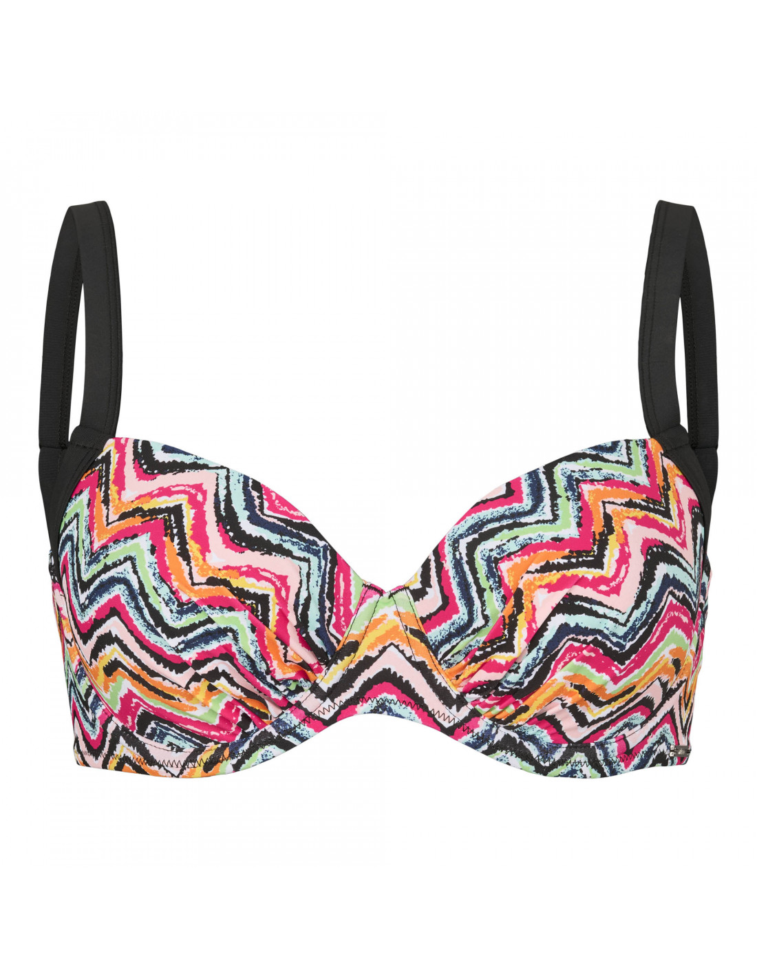 Bikinitopp med balkong. Stretch stoff. Justerbar skulderstropp. Bøyle og polstrede kopper. Bred stropp for bedre passform. Baklås. Håndvask.