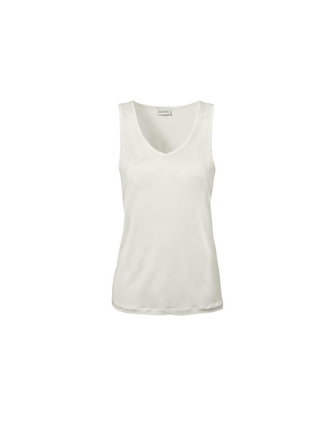 Vår elegante tanktopp i 100 % silke fra Jolene-kolleksjonen vår har V-hals og brede skulderstropper for en sofistikert og komfortabel stil. Laget av høykvalitetssilke, som er temperaturregulerende, fukttransporterende og skånsom mot huden, gir den en myk og glatt følelse. Perfekt å kombinere med enhver underdel fra samme kolleksjon for et komplett utseende.