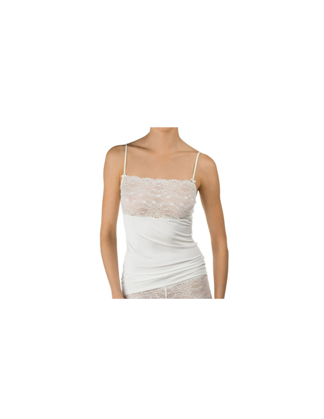 Vakker topp fra Calida med bred, halvtransparent blonde øverst.