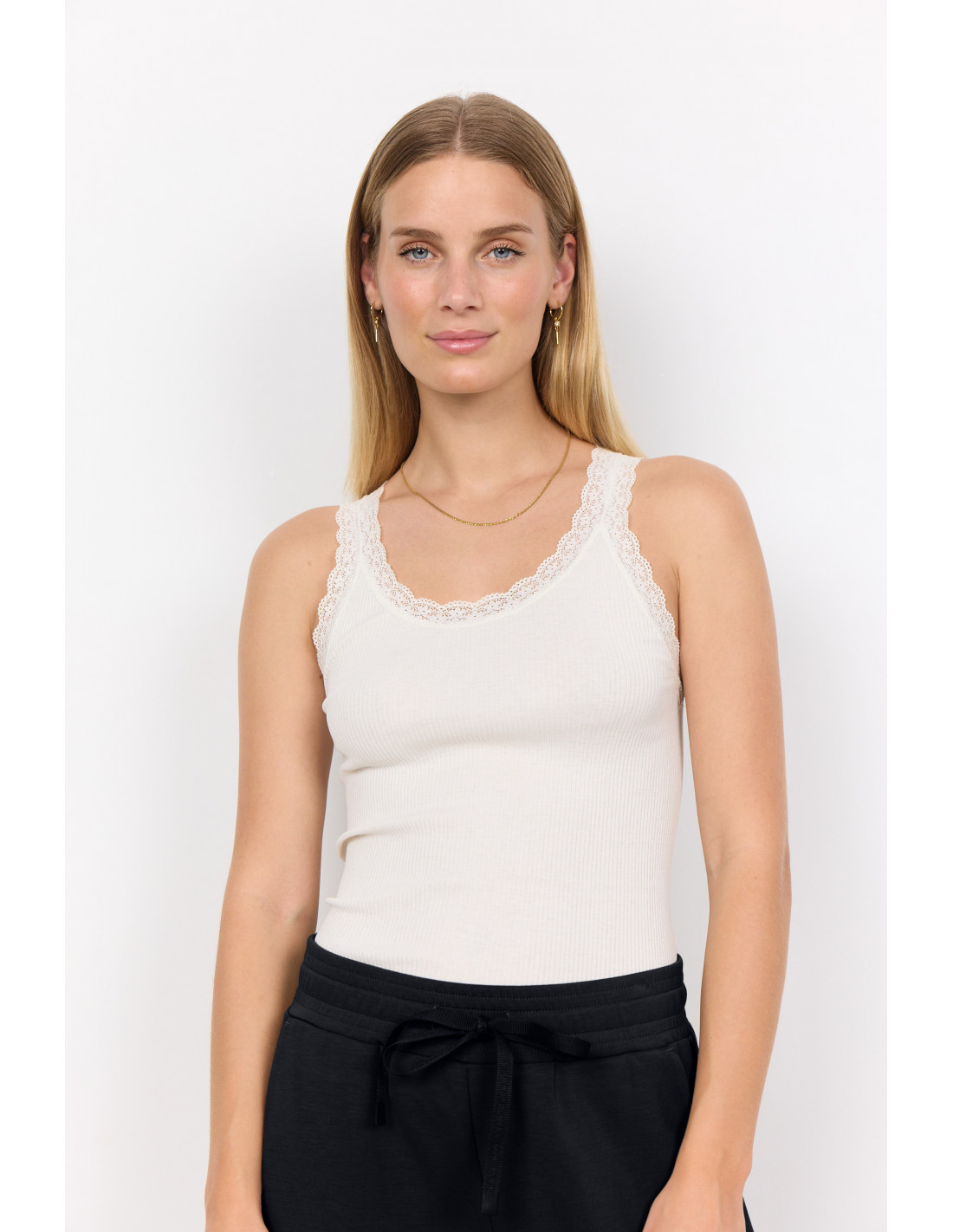 SC-Sarona 1 er en musthave-topp i garderoben i en eksklusiv silke- og bomullsblanding. Det er en klassisk topp med rund hals med blondedetaljer og en bølget effekt. Det er en feminin topp perfekt som en komfortabel basis under alle dine kule skjorter og kjoler.