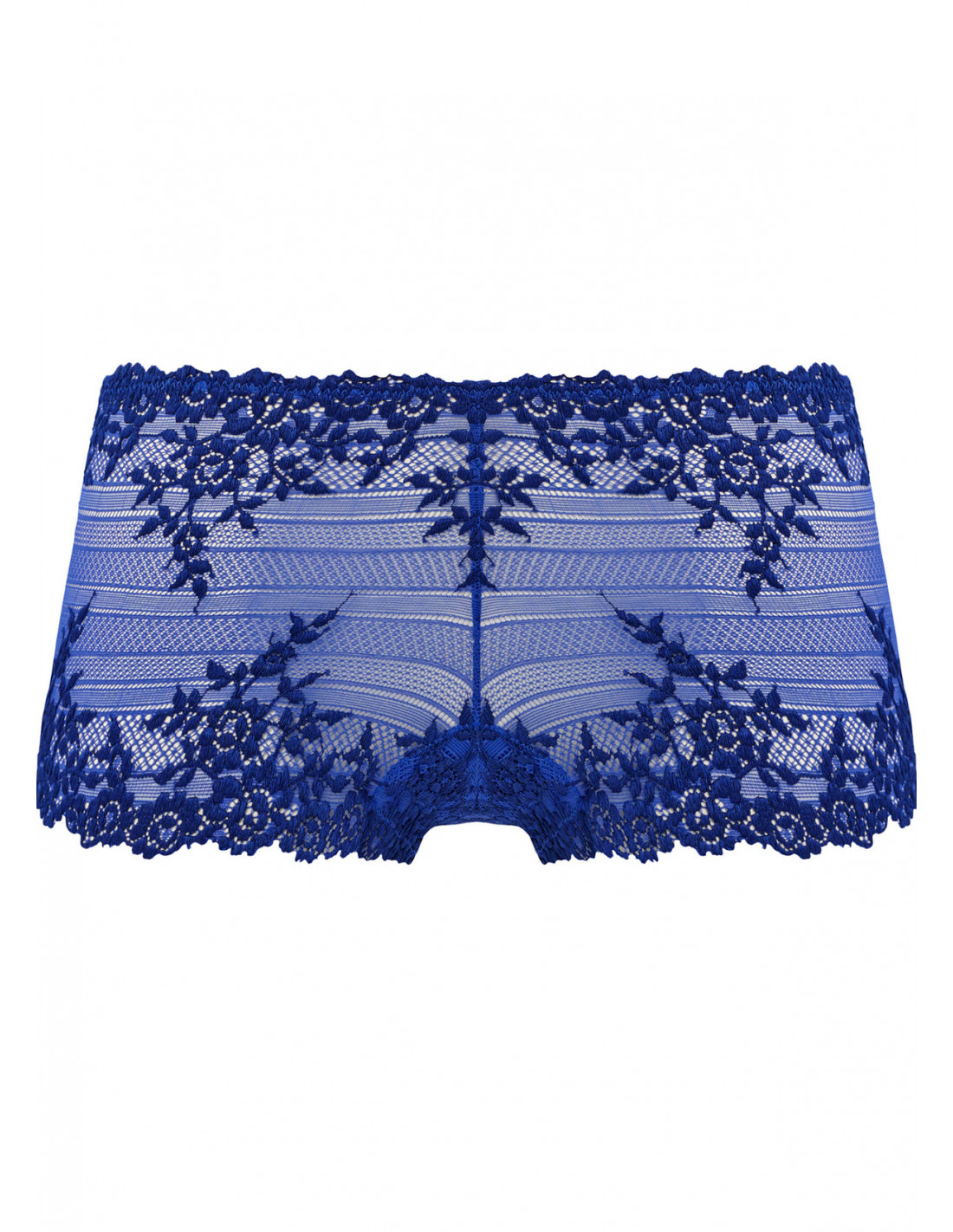 Wacoal's Embrace Lace Boy Short er gjenskapt i en rik Beaucoup Blue / Bellwether Blue farge. Med en lav midje og blomstrete stretch blonder, med kontrasterende dype blå høydepunkter på den delikate blonder trim. Disse shortsene passer perfekt sammen med vår koordinerende Soft Cup Bra for en uanstrengt elegant look.