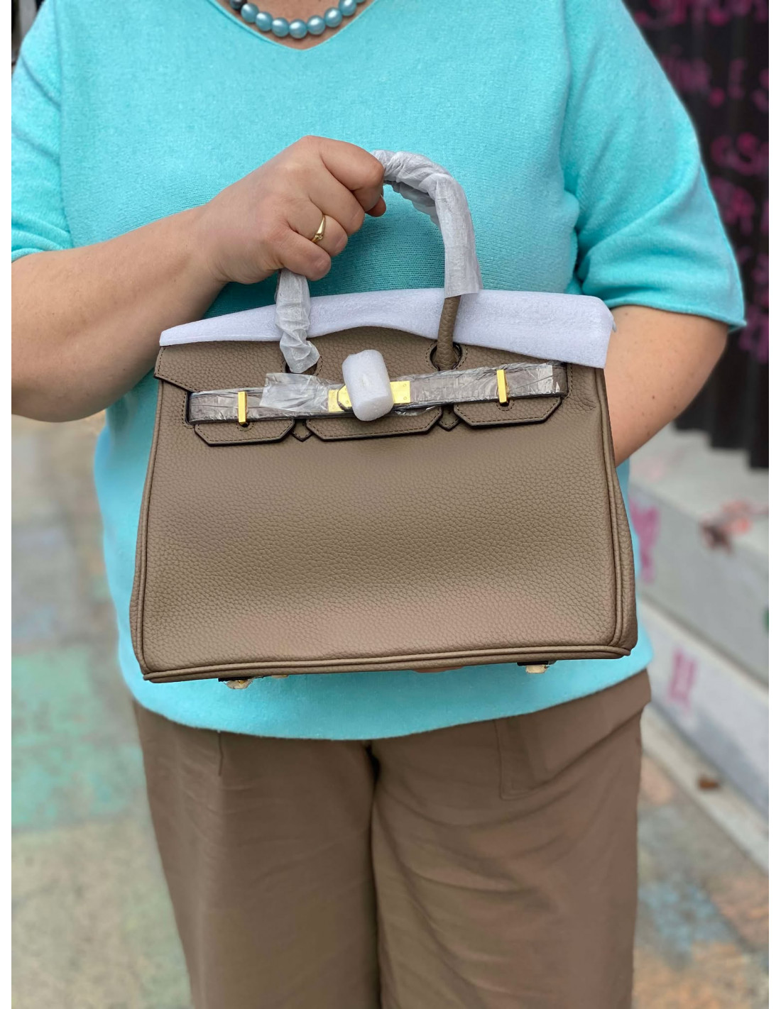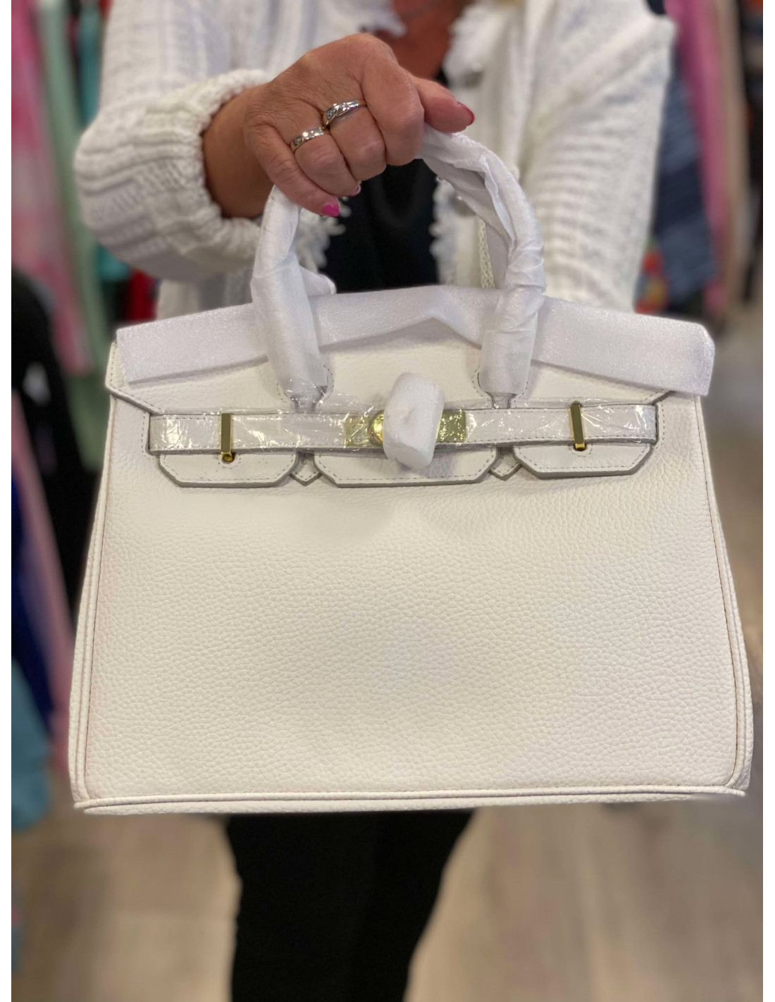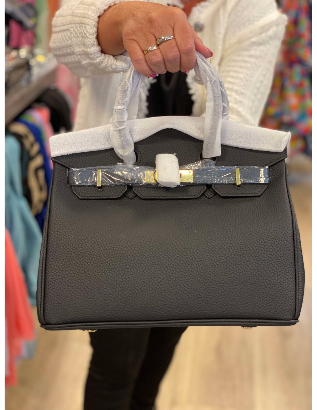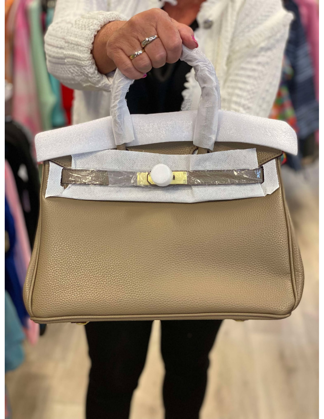 Elegant veske med flotte detaljer. Vesken har hanker og kommer med regulerbar stropp. OBS!! kommer uten veskepynt og skjerf